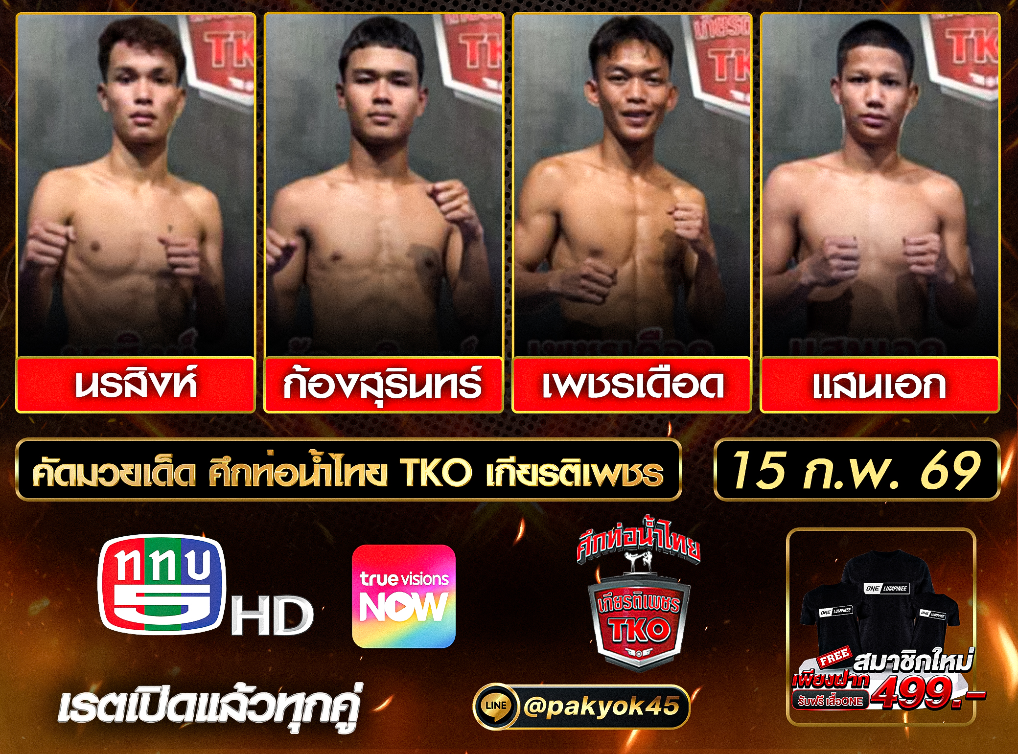 คัดมวยเด็ด ศึกท่อน้ำไทย TKO เกียรติเพชร วันอาทิตย์ที่ 15 ก.พ. 2569