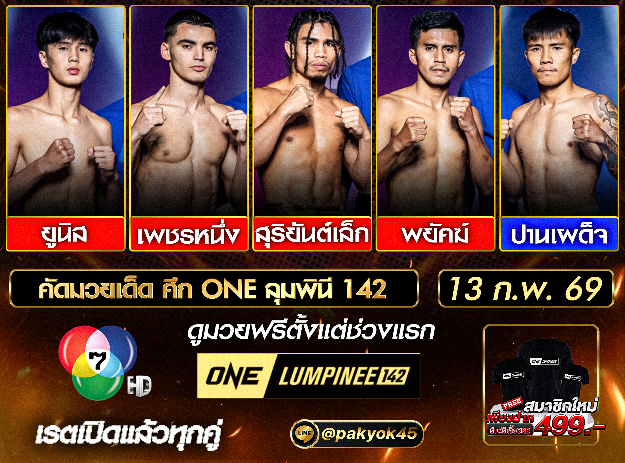คัดมวยเด็ด ศึก ONE ลุมพินี 142 วันศุกร์ที่ 13 กุมภาพันธ์ 2569