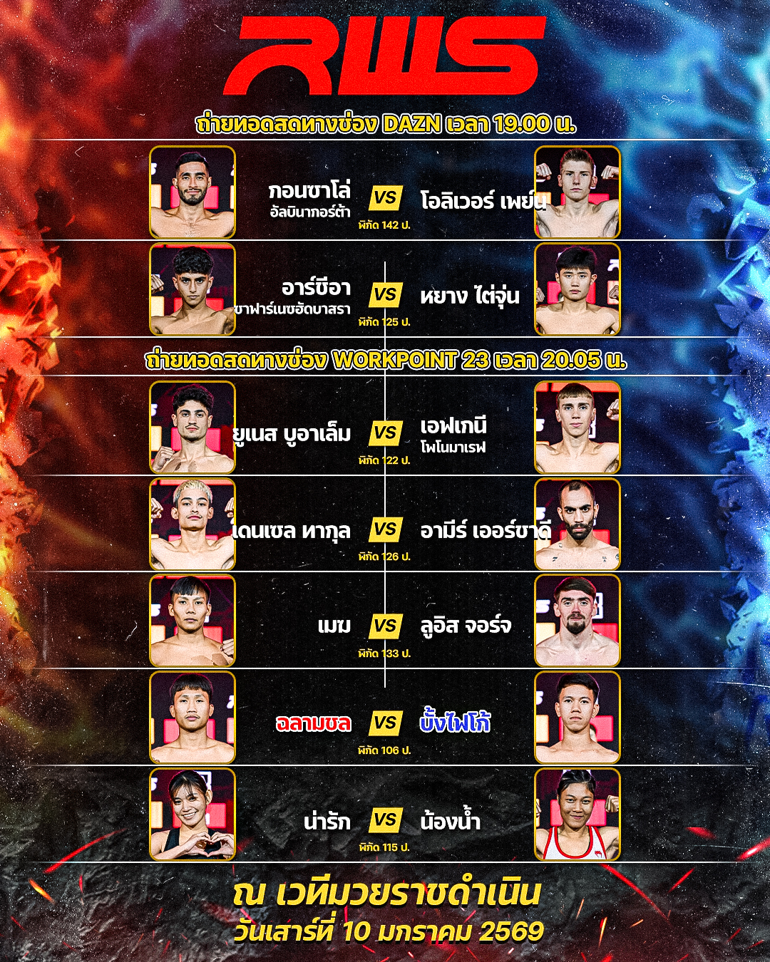 🥊 โปรแกรมมวย ศึก RWS ราชดำเนิน เวิลด์ ซีรีย์