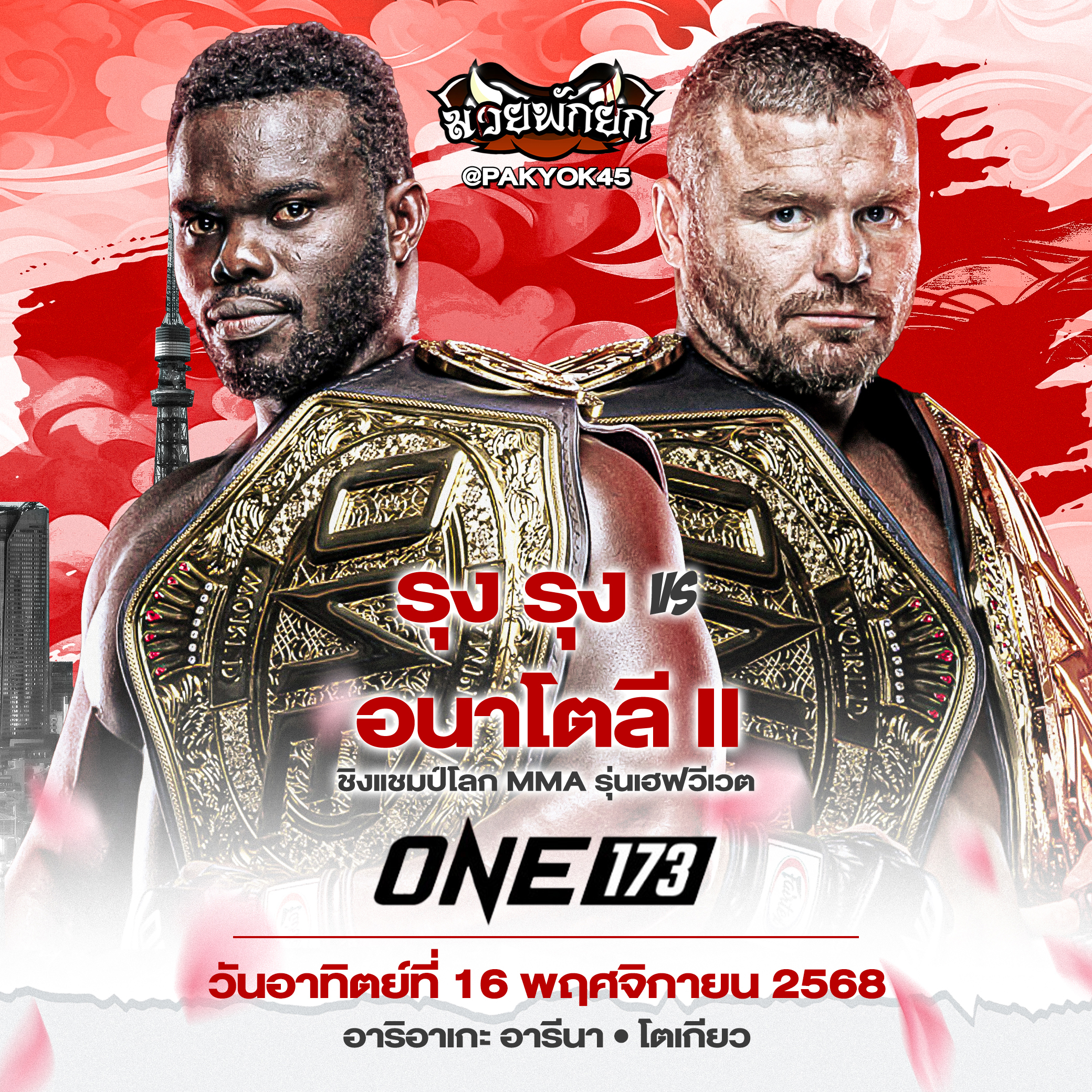 ติดตาม “รุง รุง vs อนาโตลี” ในศึก ONE 173: ซุปเปอร์บอน vs มาซาอากิ ถ่ายทอดสดจากสนาม อาริอาเกะ อารีนา กรุงโตเกียว ประเทศญี่ปุ่น วันอาทิตย์ที่ 16 พ.ย. 68