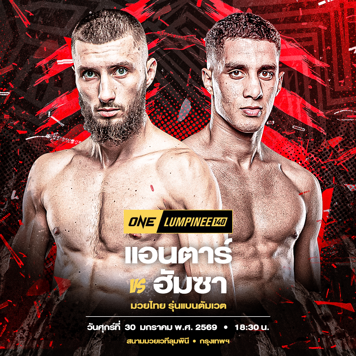 ONE ส่งท้ายเดือนแรกของปี เปิดโปรแกรมเดือดเพิ่มเติมในศึก ONE ลุมพินี 140 วันศุกร์ที่ 30 ม.ค.นี้ โดยคู่เอกภาคอินเตอร์ ประกบสองมวยหมัดฟอร์มดุมาดวลกันระหว่าง “แอนตาร์ คาเซม” จอมแกร่ง วัย 26 ปี สัญชาติฝรั่งเศส-เบลารุส พบกับ “ฮัมซา ราชิด” คู่ชกเชิงสวยวัยเดียวกันจากโมร็อกโก ภายใต้กติกามวยไทย รุ่นแบนตัมเวต (135-145 ป.)