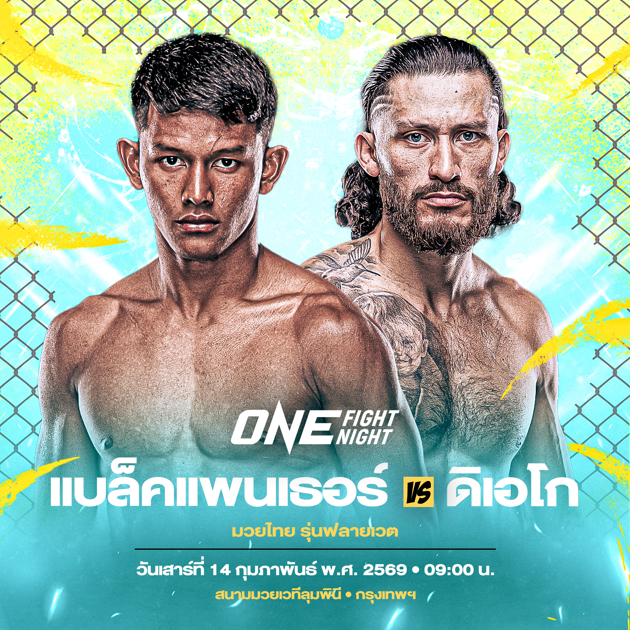 ติดตาม “แบล็คแพนเธอร์ vs ดิเอโก” ศึก ONE Fight Night 40 ถ่ายทอดสดจากสนามมวยเวทีลุมพินี (รามอินทรา) วันเสาร์ที่ 14 ก.พ. 69 จองบัตรเข้าชมในสนามผ่านทาง THAI TICKET MAJOR คู่แรกเริ่มเวลา 09.00 น.