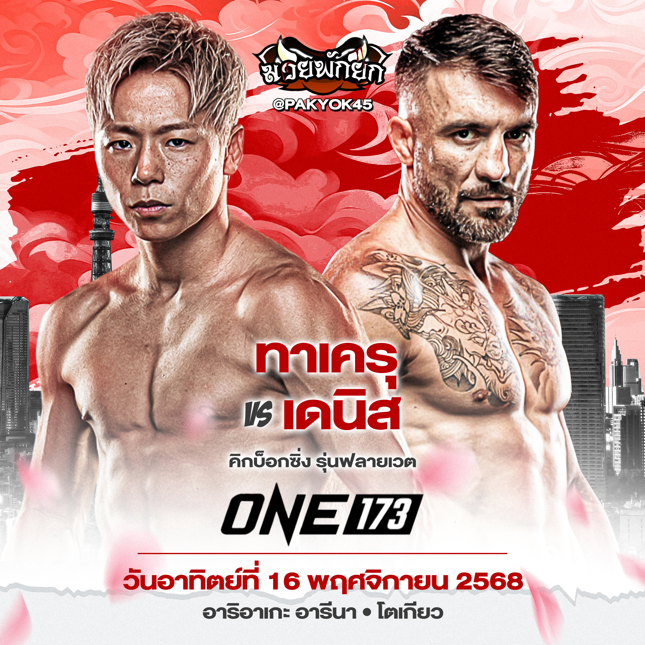 ติดตาม “ทาเครุ vs เดนิส” ในศึก ONE 173: ซุปเปอร์บอน vs มาซาอากิ ถ่ายทอดสดจากสนาม อาริอาเกะ อารีนา กรุงโตเกียว ประเทศญี่ปุ่น วันอาทิตย์ที่ 16 พ.ย. 68