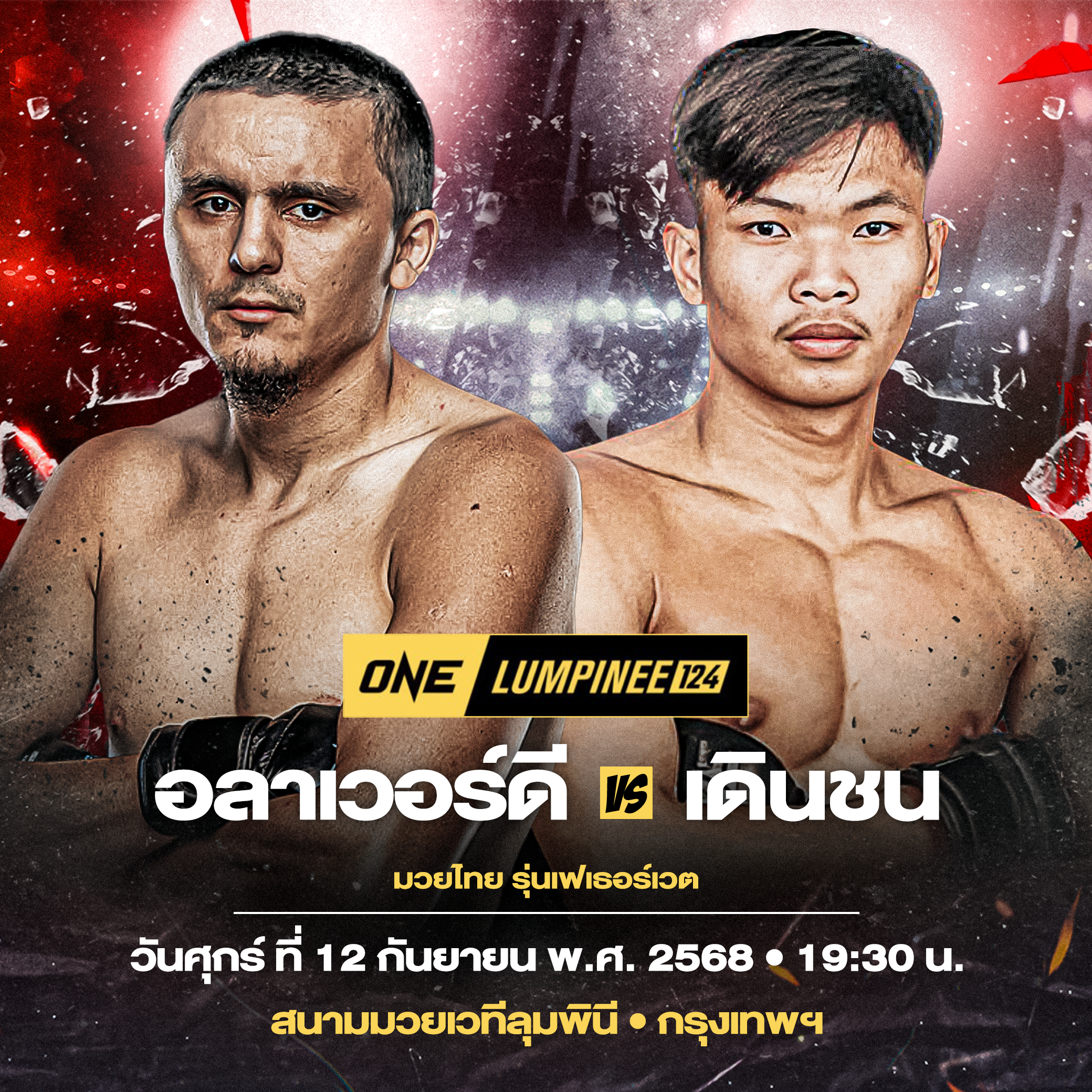 ติดตาม “อลาเวอร์ดี vs เดินชน” ศึก ONE ลุมพินี 124 ถ่ายทอดสดจากสนามมวยเวทีลุมพินี (รามอินทรา) วันศุกร์ที่ 12 ก.ย.นี้ แฟนกีฬาการต่อสู้ชาวไทยสามารถจองบัตรเข้าชมในสนามผ่านทาง THAI TICKET MAJOR คู่แรกเริ่มเวลา 19.30 น.