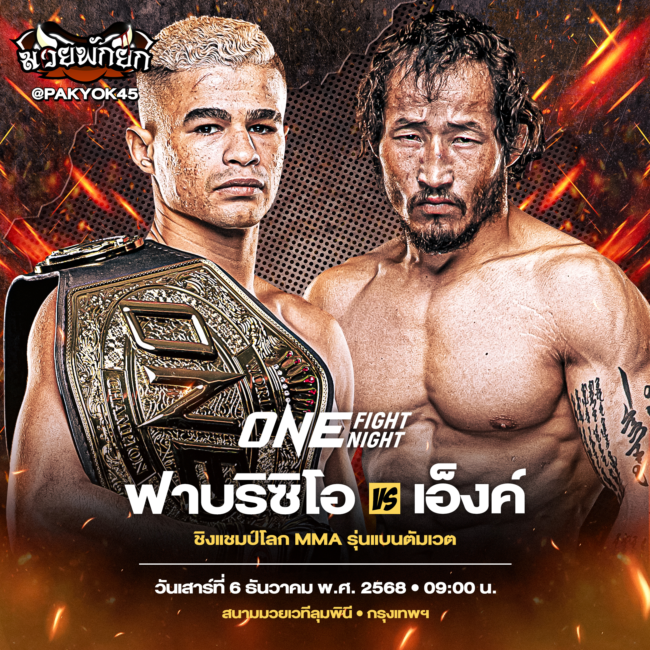 ศึกนี้จึงกลายเป็นการดวลกันของสองนักสู้ MMA ฟอร์มแรง จับตาดูว่า “ฟาบริซิโอ” จะยืดสถิติไร้พ่ายในกติกานี้และรักษาเข็มขัดไว้ต่อไป หรือ “เอ็งค์ ออร์กิล” จะขึ้นเป็นราชันคนใหม่ได้สำเร็จ เช้าวันเสาร์ที่ 6 ธ.ค.นี้ ห้ามพลาดชม
