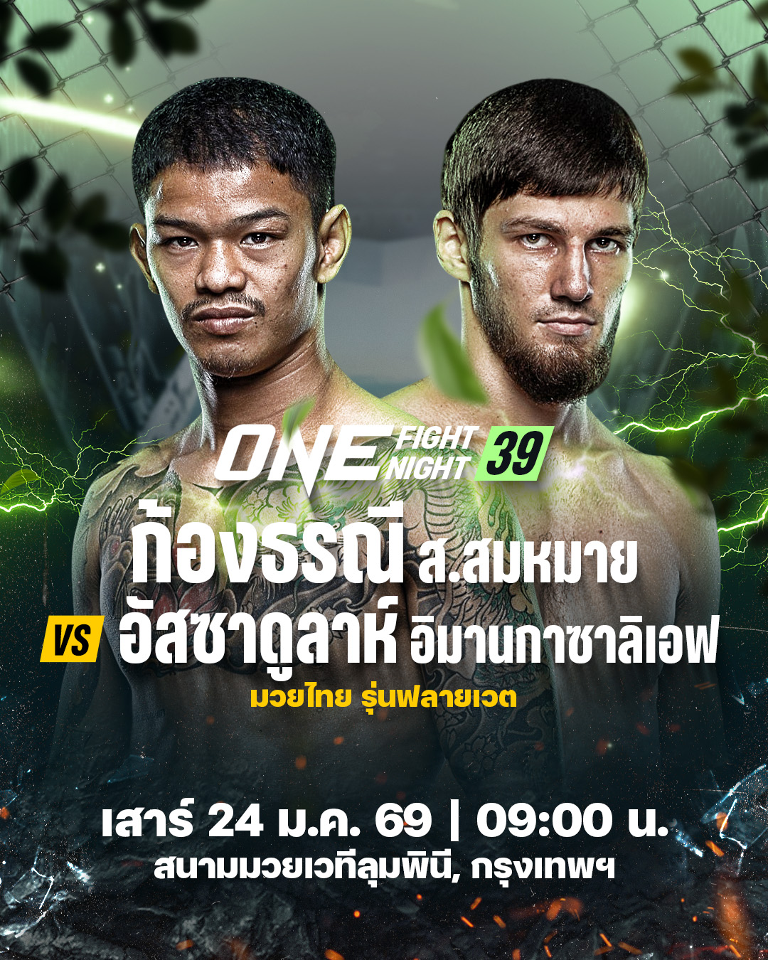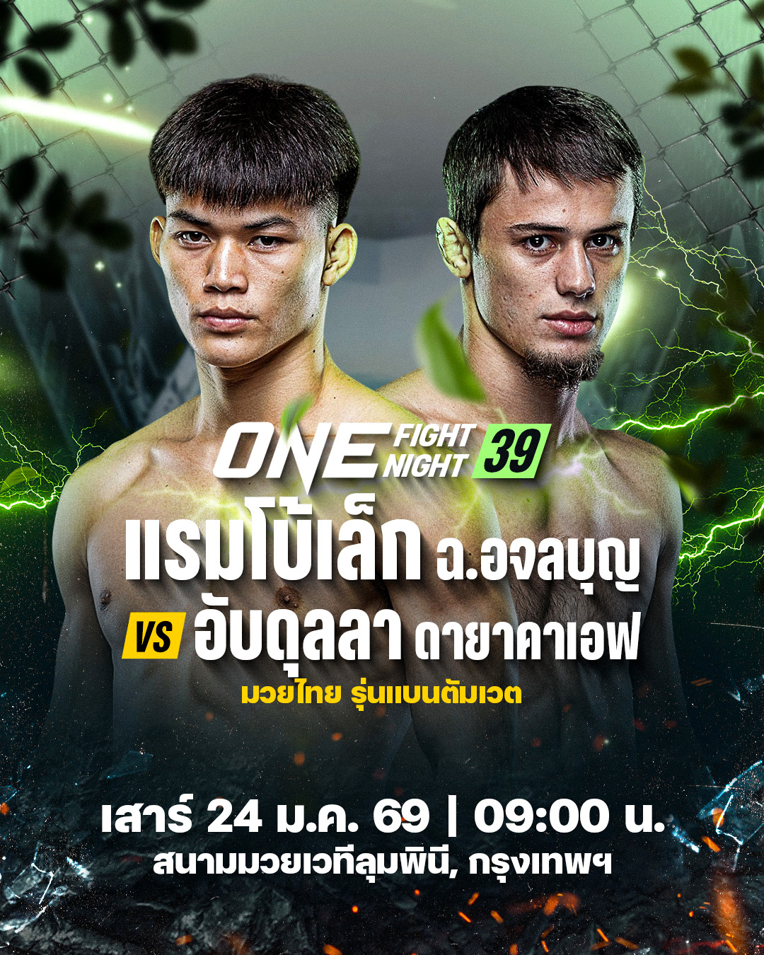 ศึก ONE Fight Night 39: แรมโบ้เล็ก vs อับดุลลา ถ่ายทอดสดจากสนามมวยเวทีลุมพินี (รามอินทรา) วันเสาร์ที่ 24 ม.ค. 69 จองบัตรเข้าชมในสนามผ่านทาง THAI TICKET MAJOR คู่แรกเริ่มเวลา 09.00 น.