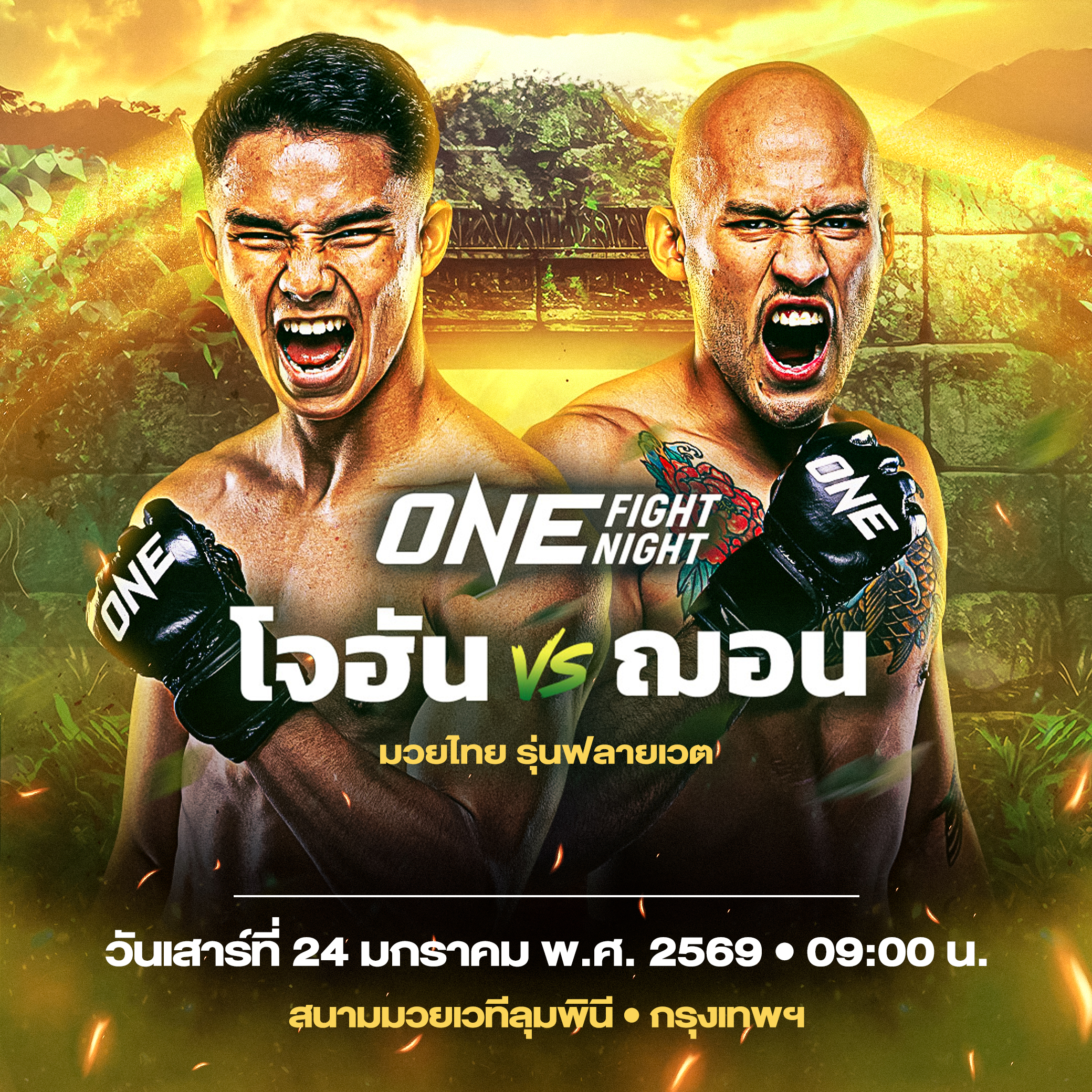 ศึก ONE Fight Night 39 ถ่ายทอดสดจากสนามมวยเวทีลุมพินี (รามอินทรา) วันเสาร์ที่ 24 ม.ค. 69 จองบัตรเข้าชมในสนามผ่านทาง THAI TICKET MAJOR คู่แรกเริ่มเวลา 09.00 น.