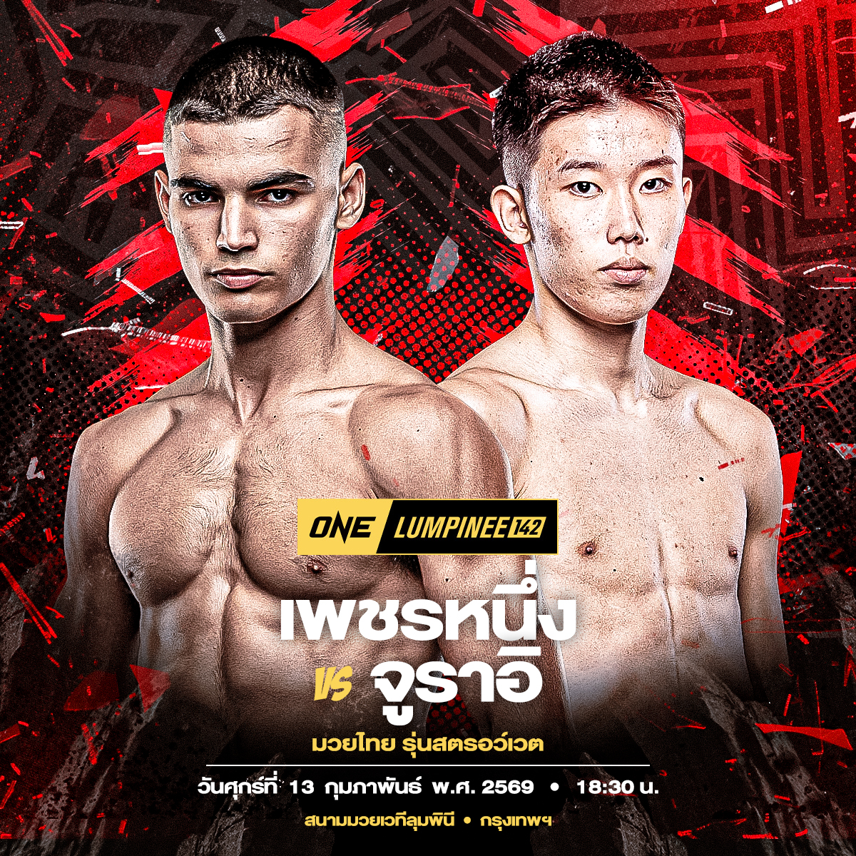 ศึก ONE ลุมพินี 142 ถ่ายทอดสดจากสนามมวยเวทีลุมพินี (รามอินทรา) วันศุกร์ที่ 13 ก.พ.นี้ เริ่มการแข่งขันเวลา 18.30 น. สามารถจองบัตรเข้าชมในสนามผ่านทาง THAI TICKET MAJOR