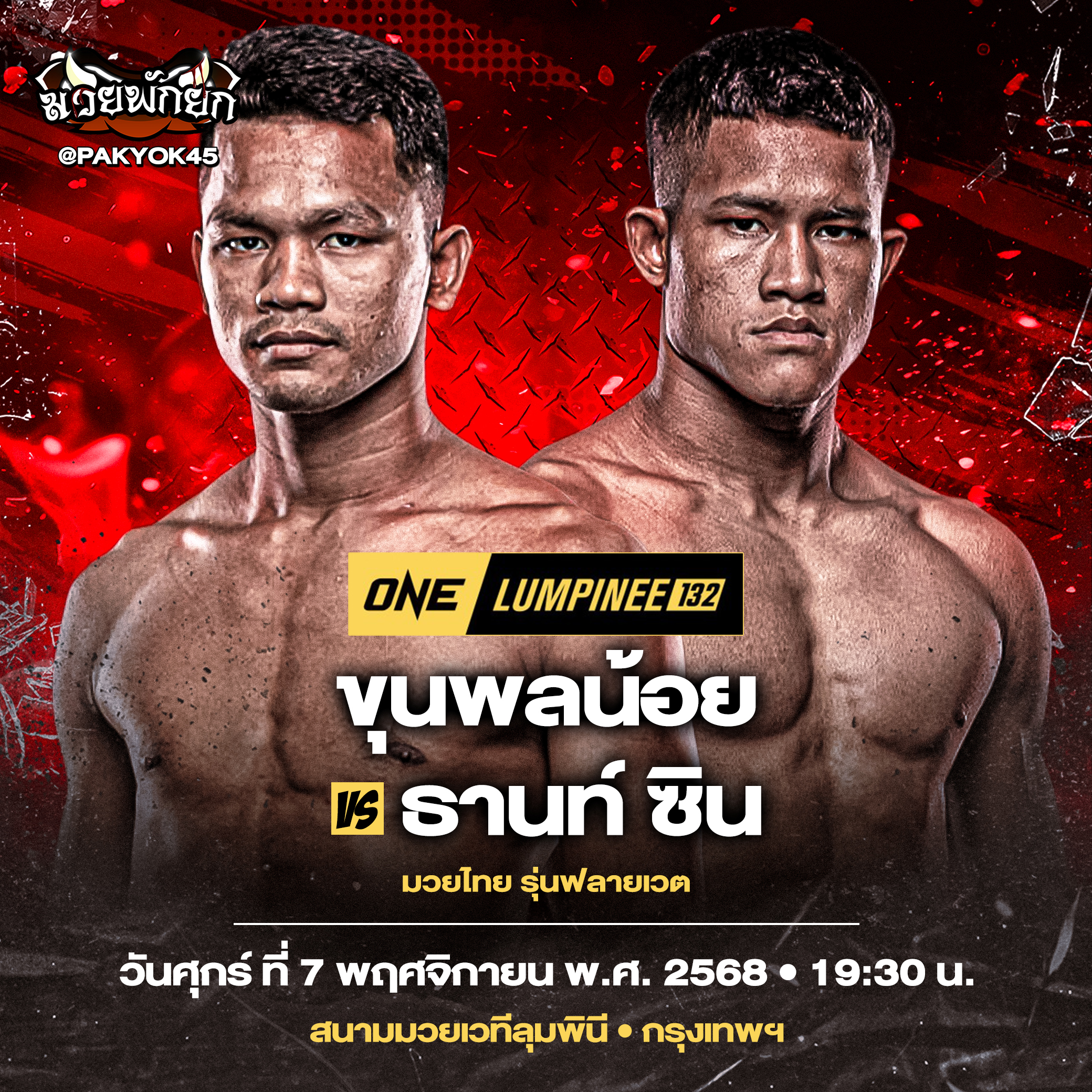 ONE เดินหน้าอัปเดตคู่มวยเดือด เตรียมระเบิดความมันต่อเนื่องในศึก ONE ลุมพินี 132 วันศุกร์ที่ 7 พ.ย.นี้ “ขุนพลน้อย ส.สมหมาย” จอมบู๊พลังอึด วัย 32 ปี จากนครศรีธรรมราช เตรียมวัดพลังแกร่งกับ “ธานท์ ซิน” นักชกสายแข็ง วัย 20 ปี จากเมียนมา ภายใต้กติกามวยไทย รุ่นฟลายเวต (125-135 ป.) ในฐานะคู่เอกภาคอินเตอร์