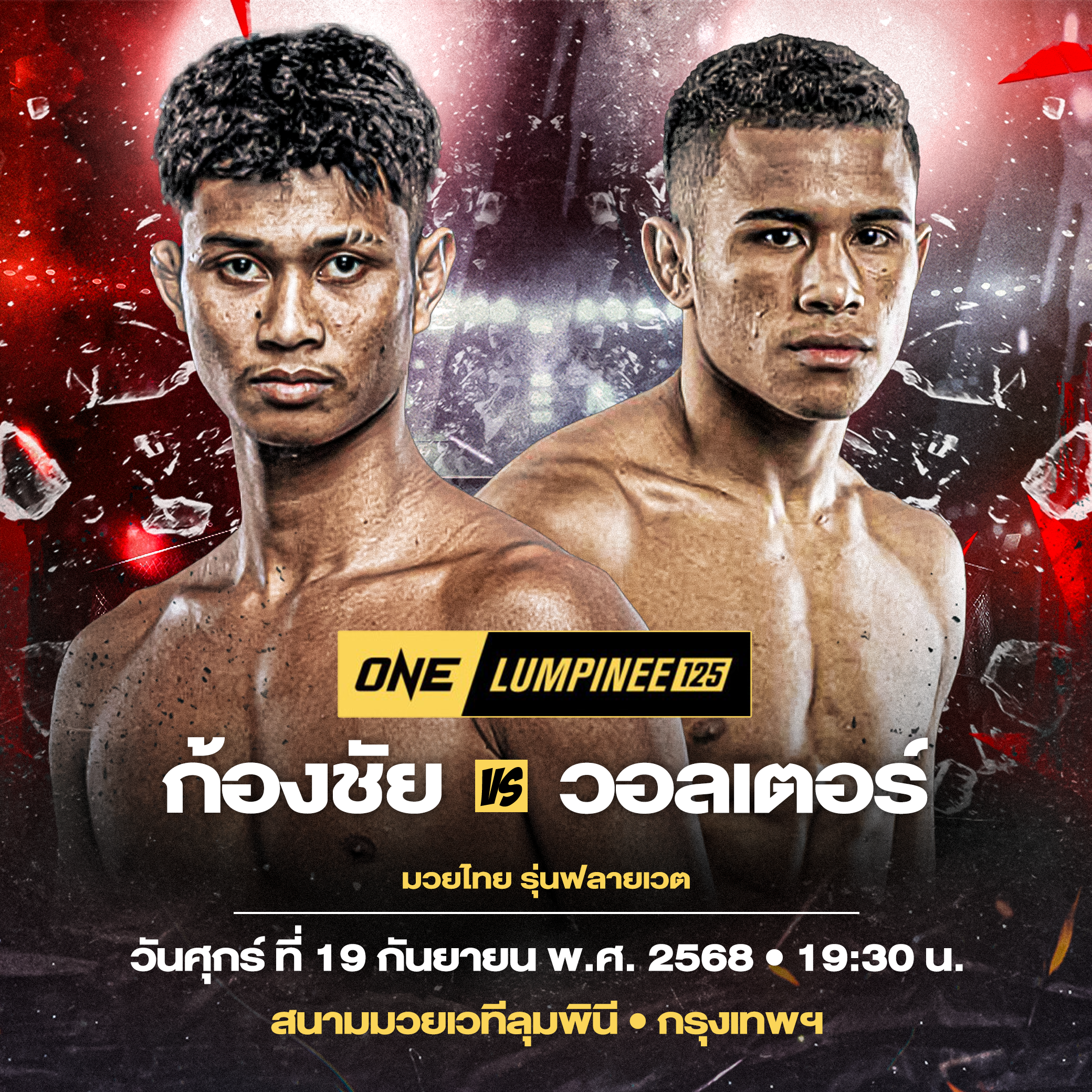 การเจอกันของคู่นี้ต่างมีดีกันคนละแบบ น่าสนใจว่า “ก้องชัย” จะใช้ลูกบู๊ดุดันหยุดความว่องไวของ “วอลเตอร์” ได้หรือไม่ ฝ่ายใดโชว์ฟอร์มได้ถูกใจแฟนมวยมากกว่าก็มีโอกาสได้ไปต่ออีกไกล บทสรุปจะเป็นอย่างไร ร่วมลุ้นไปพร้อมกัน ในศึก ONE ลุมพินี 125 วันศุกร์ที่ 19 ก.ย.นี้