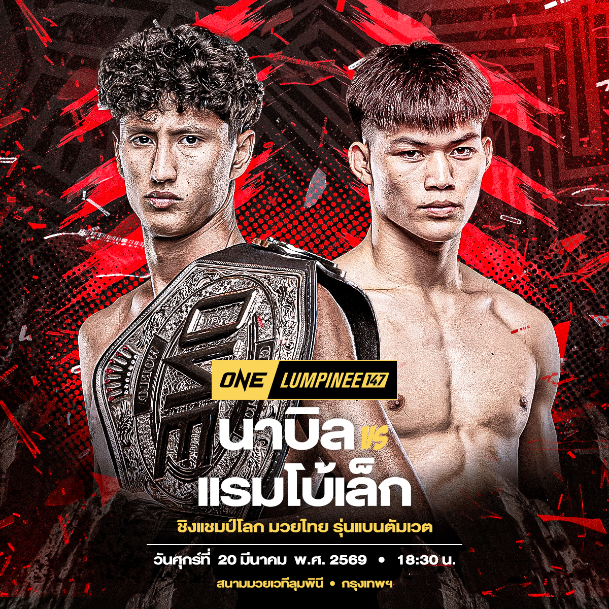 ศึก ONE ลุมพินี 147 ถ่ายทอดสดจากสนามมวยเวทีลุมพินี (รามอินทรา) วันศุกร์ที่ 20 มี.ค.นี้ เริ่มการแข่งขันเวลา 18.30 น. สามารถจองบัตรเข้าชมในสนามผ่านทาง THAI TICKET MAJOR