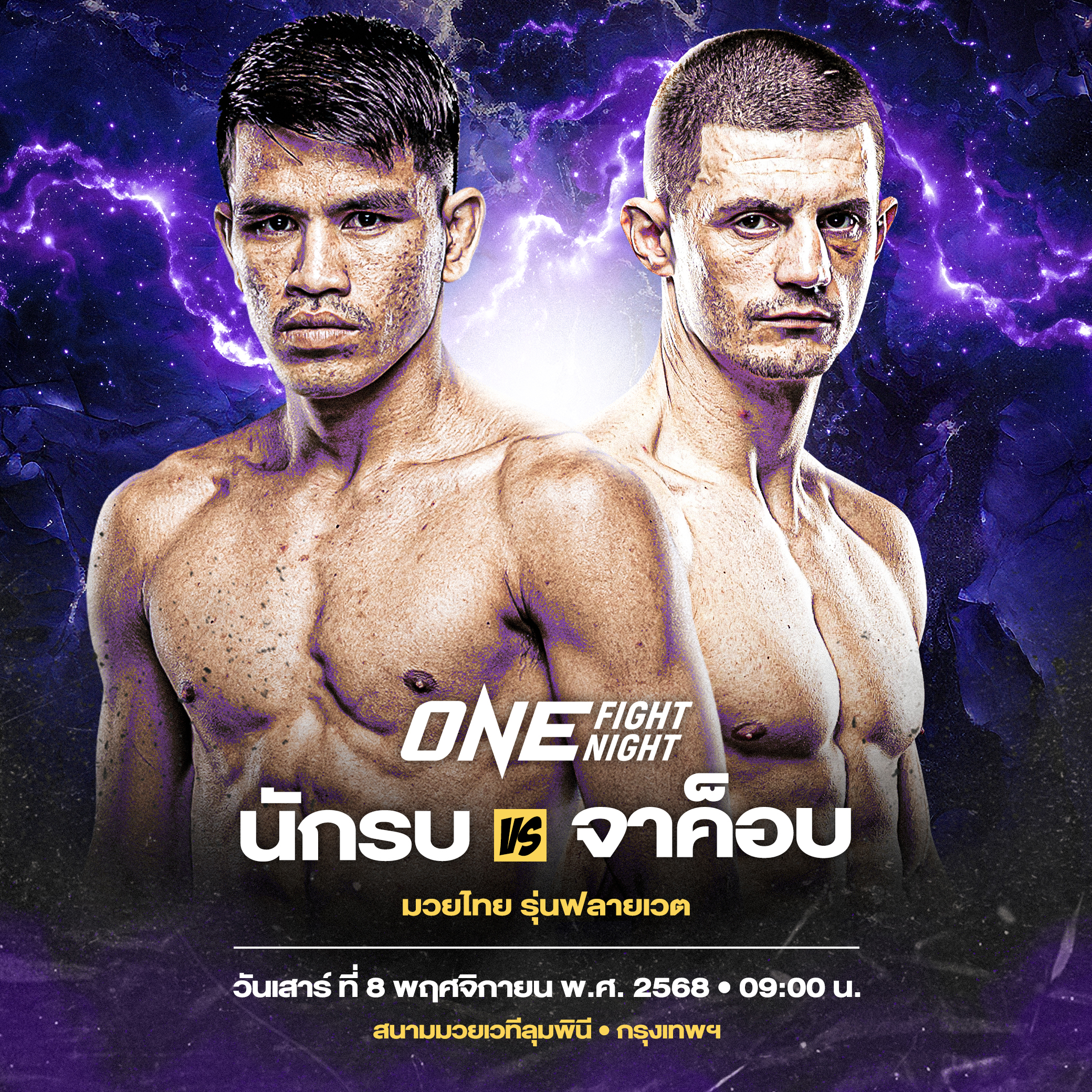 เติมความเดือดไม่หยุด สำหรับศึก ONE Fight Night 37 ที่จะถ่ายทอดสดจากสนามมวยเวทีลุมพินี (รามอินทรา) ในช่วงไพรม์ไทม์อเมริกา ซึ่งตรงกับช่วงเช้าเวลา 09:00 น. ในวันเสาร์ที่ 8 พ.ย. 68 โดยจัดให้อดีตสองตัวท็อปของกติกามวยไทย รุ่นฟลายเวต (125-135 ป.) มาชิงแต้มชัยสำคัญกันระหว่าง “นักรบ แฟร์เท็กซ์” จอมบู๊สายแข็ง วัย 26 ปี จากสุรินทร์ พบกับ “จาค็อบ สมิธ” นักชกแกร่ง วัย 33 ปี จากสหราชอาณาจักร