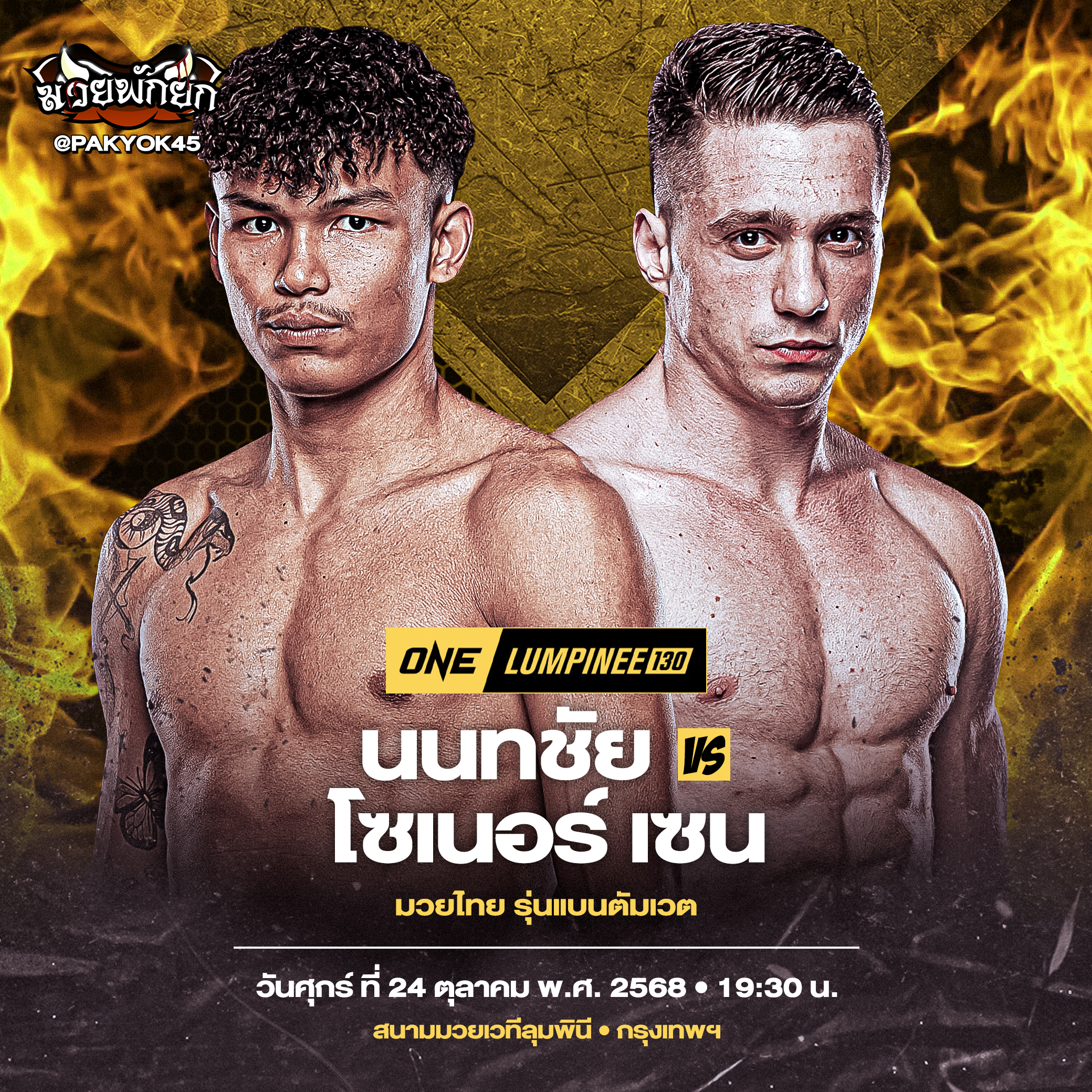 เผยโฉมคู่มวยดุเดือด ในศึก ONE ลุมพินี 130 วันศุกร์ที่ 24 ต.ค.นี้ โดย “นนทชัย จิตรเมืองนนท์” นักชกดีกรีแชมป์ Road To ONE Thailand ซีซัน 2 จากชุมพร เตรียมลดพิกัดสู่รุ่นแบนตัมเวต (135-145 ป.) ครั้งแรก พบกับ “โซเนอร์ เซน” กำปั้นหมัดดุ วัย 28 ปี จากตุรกี ในกติกามวยไทย รุ่นแบนตัมเวต