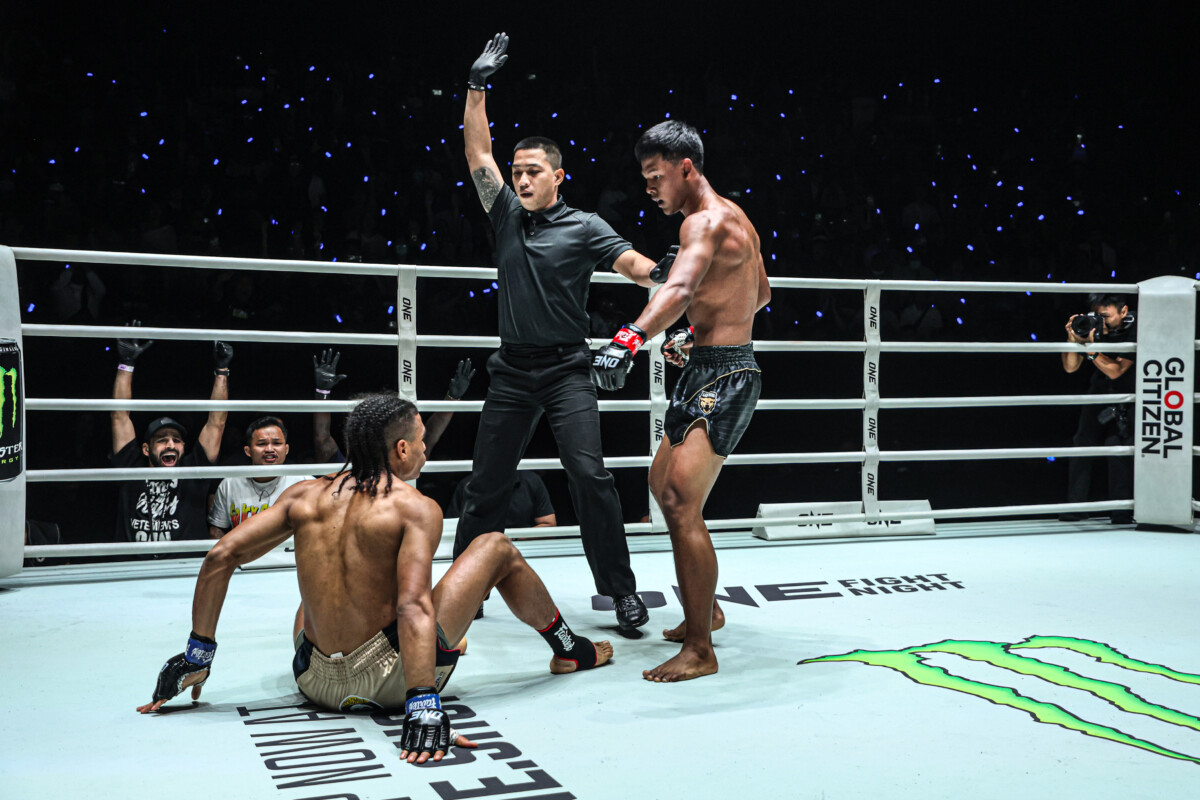 หลังเสียงระฆังเริ่มเกมดังขึ้น “นิโค” ไม่รอช้า เดินหน้าบุกเข้าใส่ทันที ปลายยกแรกกดหมัดส่ง “ลุค” หล่นลงไปนั่งก้นจำเบ้าเรียกนับตุนได้ก่อน เข้าสู่ยกสอง “นิโค” คุมเกมไว้ได้หมดจด เดินไล่บี้ต่อเนื่องจน “ลุค” ติดมุมไร้ทางตอบโต้ กรรมการเห็นท่าไม่ดีจึงสั่งยุติการแข่งขัน “นิโค” โชว์ฟอร์มสมราคาตัวท็อปของรุ่นเอาชนะทีเคโอ “ลุค” อย่างเด็ดขาดในยก 2 พร้อมเพิ่มสถิติในศึก ONE เป็น 5-1