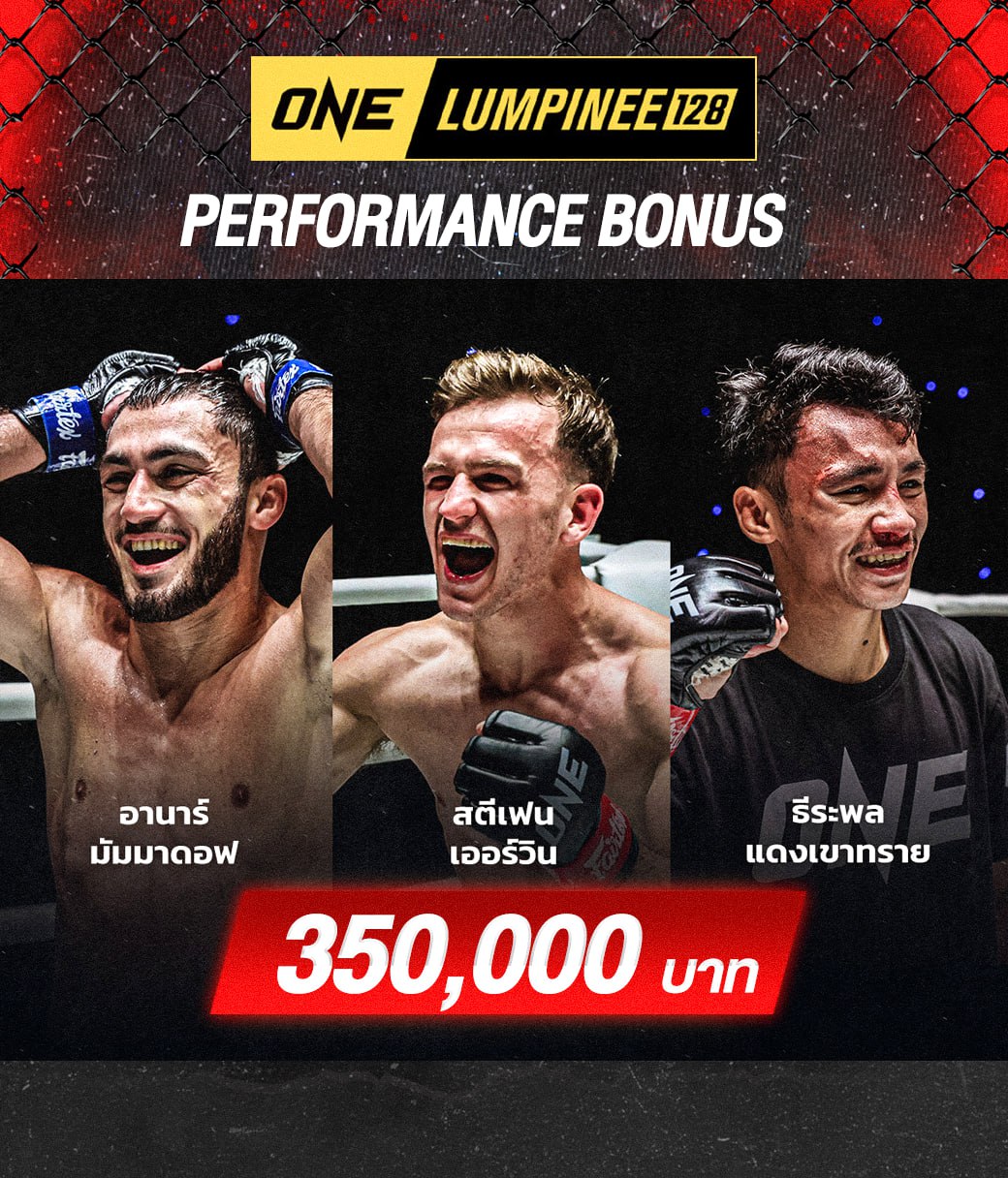 ตลอดค่ำคืนที่ผ่านมา เต็มไปด้วยการแข่งขันคุณภาพสูง ปรากฏว่ามีนักกีฬา 3 ราย โชว์ลีลาปิดเกมเข้าตา บิ๊กบอส “ชาตรี ศิษย์ยอดธง” จึงสั่งแจกรางวัลโบนัสพิเศษทันทีคนละ 350,000 บาท ไม่รวมค่าตัว รวมยอดเงินทั้งสิ้น 1,050,000 บาท (หนึ่งล้านห้าหมื่นบาท) ได้แก่ “ธีระพล แดงเขาทราย”, “อานาร์ มัมมาดอฟ” และ “สตีเฟน เออร์วิน”