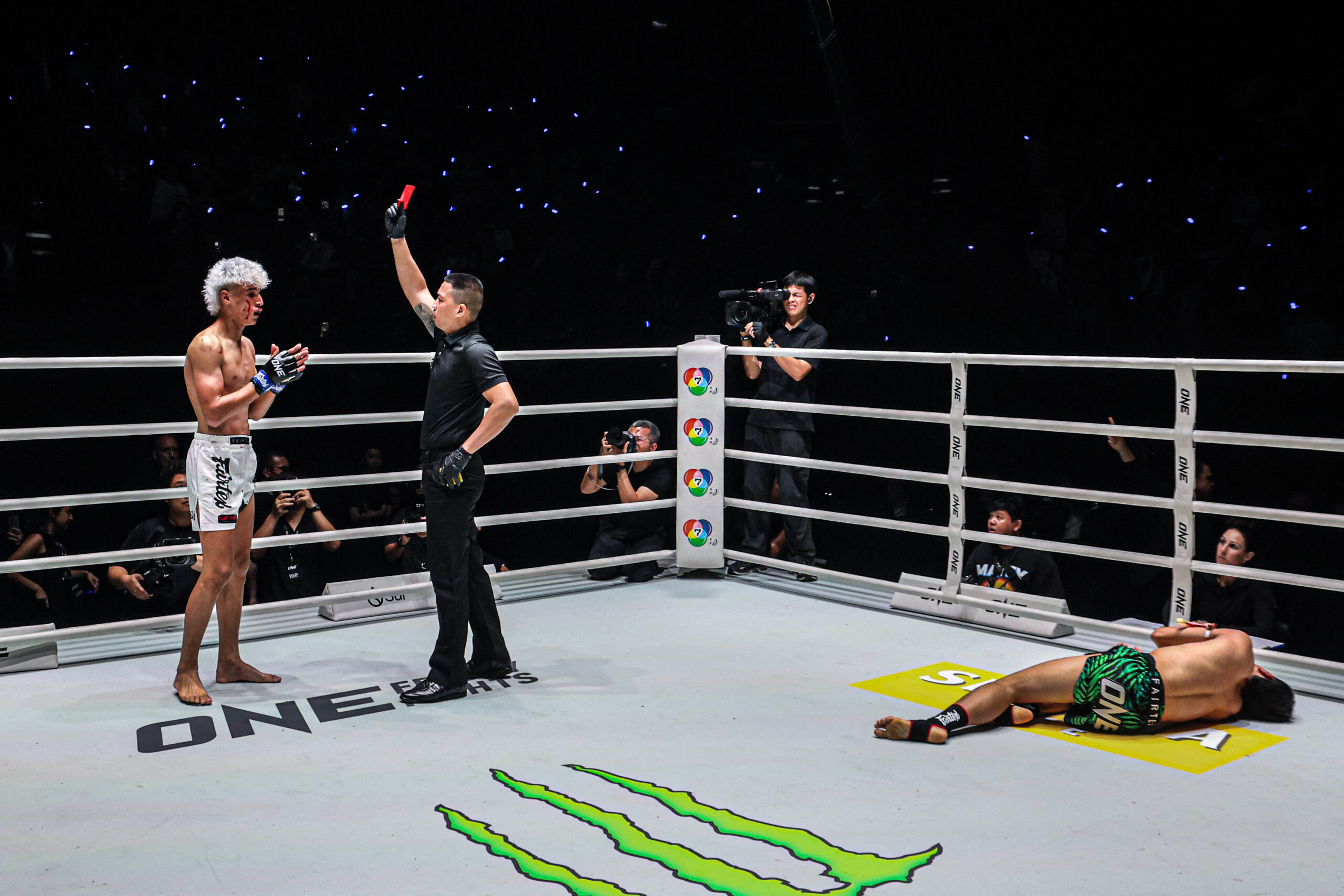 เปิดฉากยกแรก “แรมบ๊อง” เดินหน้าแลกหมัดไม่มีเกรงกลัว หลังจากซัดกันไปมา “สตีเฟน” สบช่องเห็น “แรมบ๊อง” การ์ดตก จึงตวัดแข้งขวาเข้าเต็มก้านคอ ส่งกำปั้นไทยล้มทั้งยืน ปิดเกมน็อกไวในเวลาเพียง 2:46 นาทีของยกแรก ทำให้ “สตีเฟน” เก็บชัย 5 ไฟต์ติดต่อกัน พร้อมรับโบนัส 350,000 บาท ก้อนที่ 3 และยังชนะใจ “บิ๊กบอส” ชาตรี ศิษย์ยอดธง คว้าสัญญานักกีฬา ONE เป็นคนที่ 33 จากเวที ONE ลุมพินี