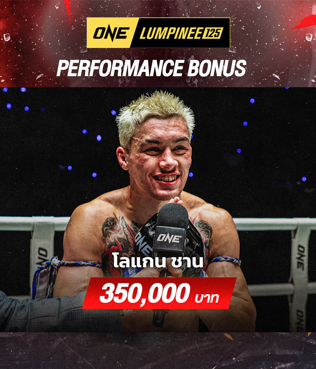 ตลอดการแข่งขันในค่ำคืนนี้ ปรากฏว่ามีนักสู้เพียงรายเดียวที่ทำผลงานเข้าตาบิ๊กบอส “ชาตรี ศิษย์ยอดธง” ได้แก่ “โลแกน ชาน” ได้รับเงินรางวัลโบนัสพิเศษไปทันทีจำนวน 350,000 บาท (สามแสนห้าหมื่นบาท) ไม่รวมค่าตัว