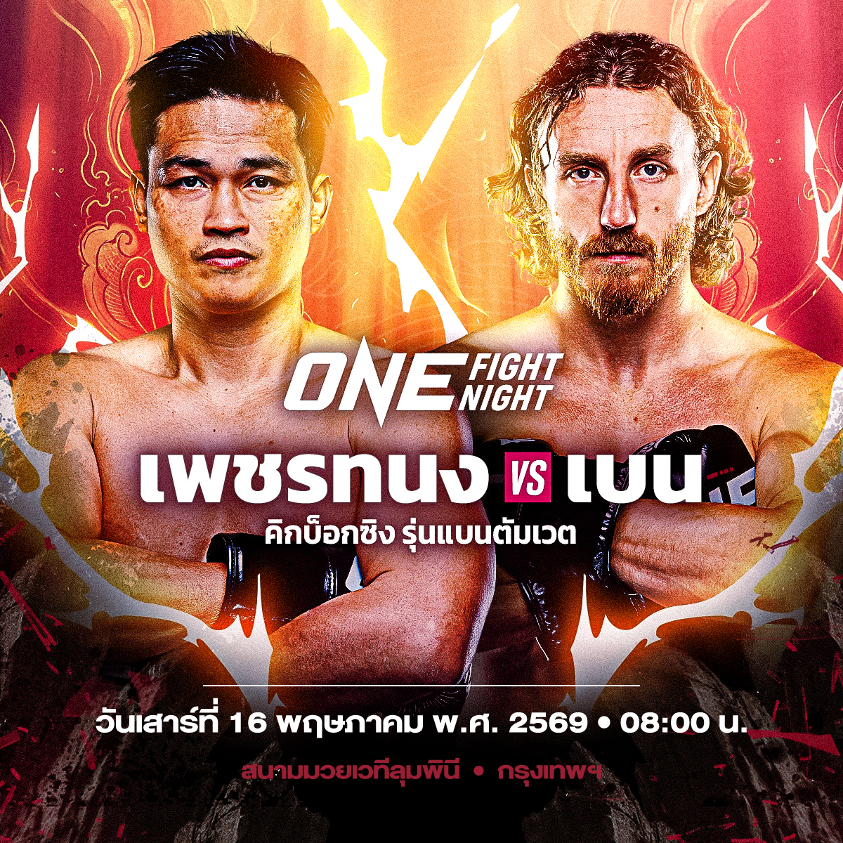ตอนนี้ไฟในตัวของ “เบน” กำลังลุกโชน พร้อมโชว์สไตล์บู๊ที่ดุดันและเต็มไปด้วยเทคนิค ออกมาแสดงให้เห็นอีกครั้งในการเผชิญหน้ากับ “เพชรทนง” โดยเจ้าตัวตั้งเป้าชัดเจนว่าอยากโค่นอีกหนึ่งอดีตแชมป์โลกลงให้ได้ เพื่อสร้างชื่อเสียงให้กับตัวเอง และยกระดับฝีมือก้าวขึ้นไปตามล่าความสำเร็จในอนาคตต่อไป