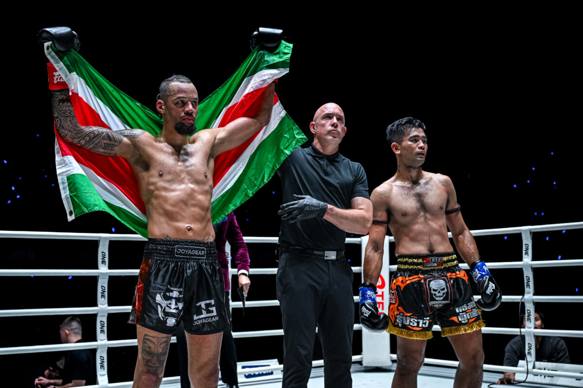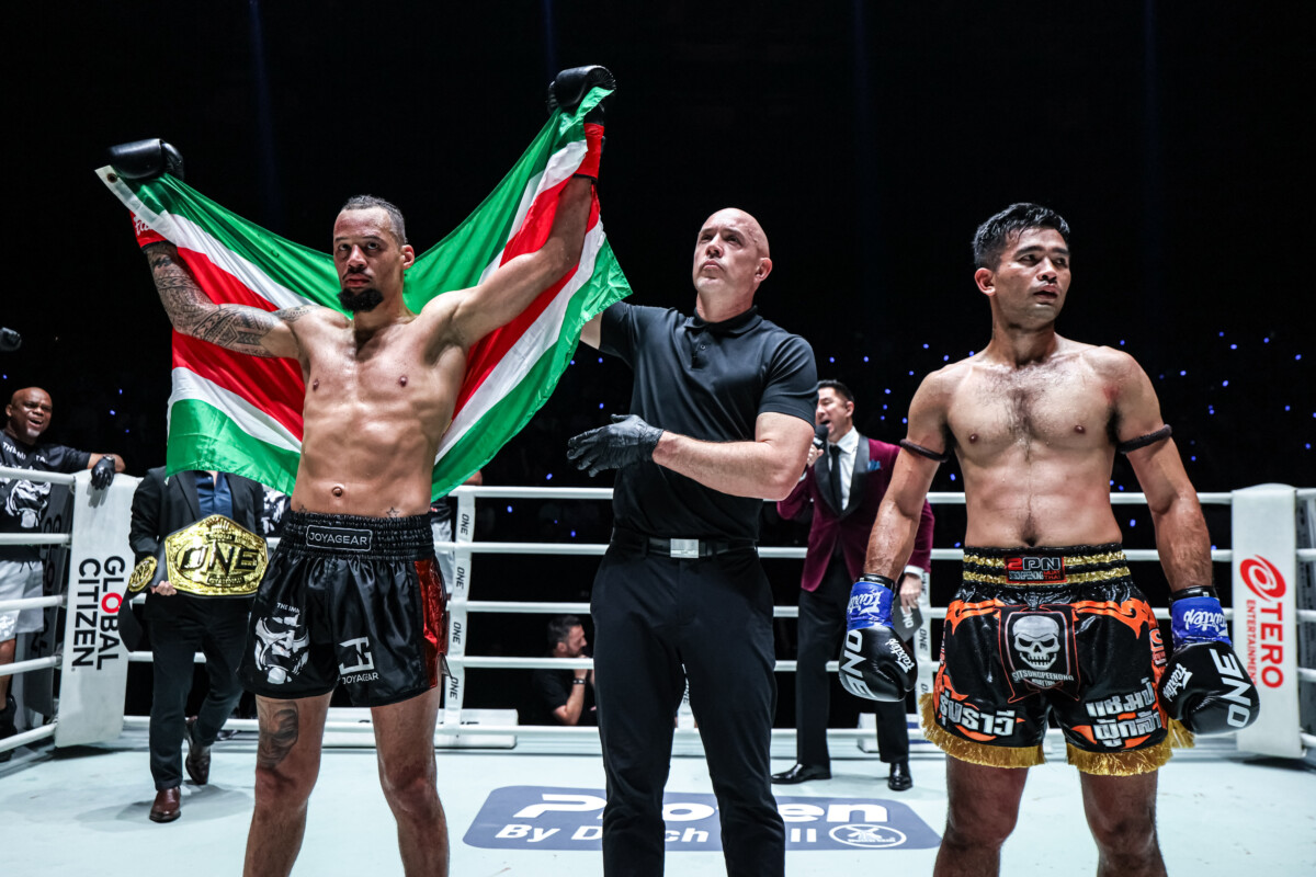 ไฟต์นี้ “รีเกียน” อาศัยความแข็งแกร่งเดินบดหนัก ก่อนที่ในยก 3 จะได้จังหวะรัวหมัดเรียกนับได้สำเร็จ ช่วงเวลาที่เหลือ “รุ่งราวี” ไม่มีอะไรจะเสีย เปิดเกมบุกแลกเต็มกำลัง แต่สุดท้ายไล่ไม่ทัน ครบ 5 ยก “รีเกียน” เป็นฝ่ายเอาชนะคะแนนเอกฉันท์ คว้าเข็มขัด ONE คิกบ็อกซิง รุ่นไลต์เวต กลับมาพาดบ่า พร้อมกับคืนสถานะราชันสองกติกาสำเร็จ