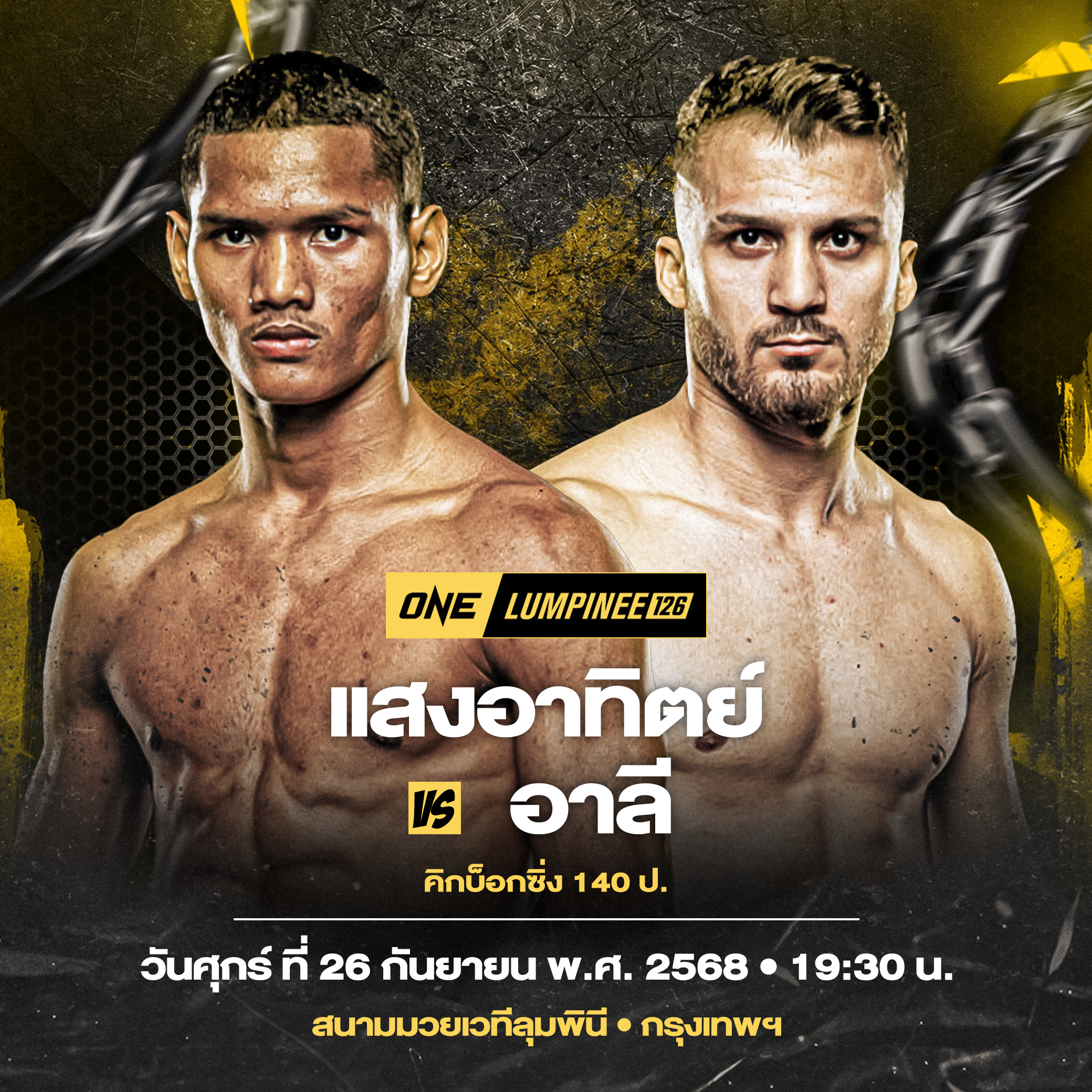 ศึก ONE ลุมพินี 126 ถ่ายทอดสดจากสนามมวยเวทีลุมพินี (รามอินทรา) วันศุกร์ที่ 26 ก.ย.นี้ แฟนกีฬาการต่อสู้ชาวไทยสามารถจองบัตรเข้าชมในสนามผ่านทาง THAI TICKET MAJOR คู่แรกเริ่มเวลา 19.30 น.