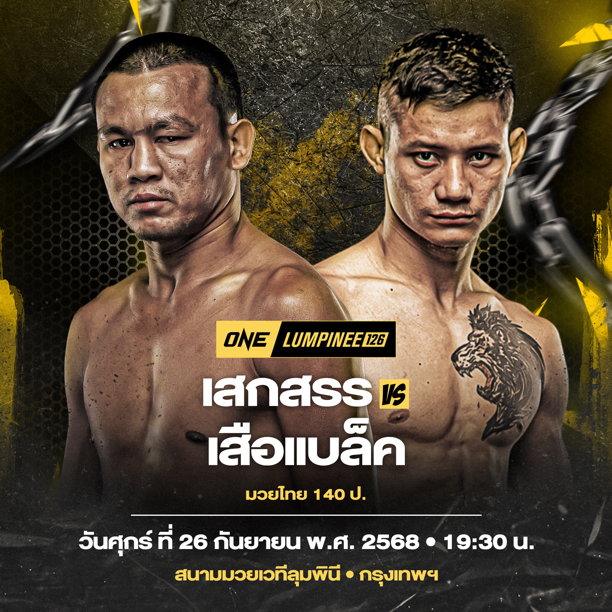 ติดตาม “เสกสรร vs เสือแบล็ค” ศึก ONE ลุมพินี 126 ถ่ายทอดสดจากสนามมวยเวทีลุมพินี (รามอินทรา) วันศุกร์ที่ 26 ก.ย.นี้ ส่วนบัตรเข้าชมในสนามจำหน่ายหมดแล้ว
