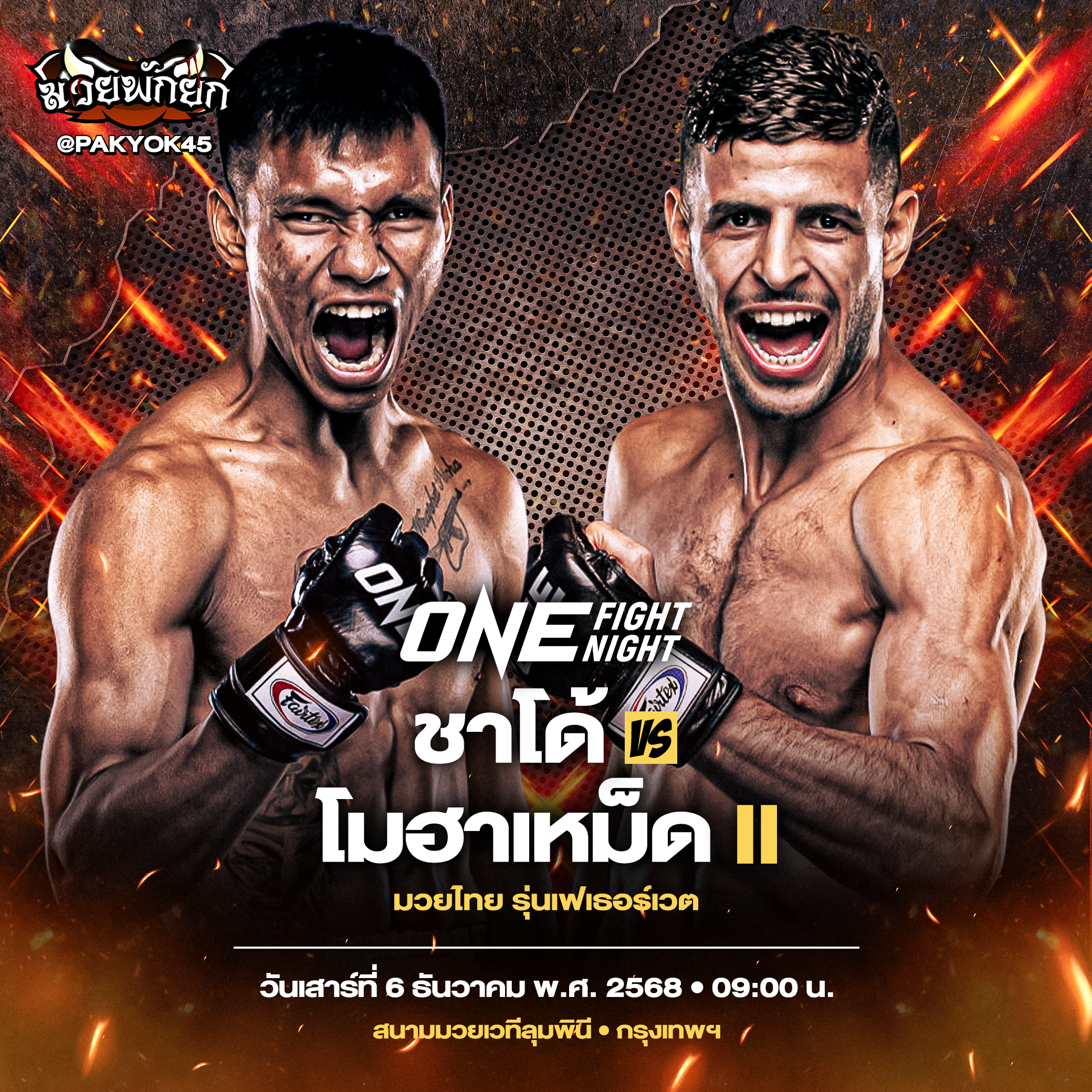ONE ทยอยปล่อยโปรแกรมเดือดกันต่อเนื่อง ในศึก ONE Fight Night 38 ที่จะถ่ายทอดสดในช่วงไพรม์ไทม์อเมริกา ซึ่งตรงกับช่วงเช้าเวลา 09.00 น. ในวันเสาร์ที่ 6 ธ.ค. 68 จากสนามมวยเวทีลุมพินี (รามอินทรา) โดย “ชาโด้ สิงห์มาวิน” นักสู้ยอดกตัญญู วัย 25 ปี จากเมืองตาก ได้คิวรีแมตช์ภาคสองกับ “โมฮาเหม็ด ยูเนส ราบาห์” มวยอาวุธเดือด วัย 27 ปี จากแอลจีเรีย ในกติกามวยไทย รุ่นเฟเธอร์เวต (145-155 ป.)