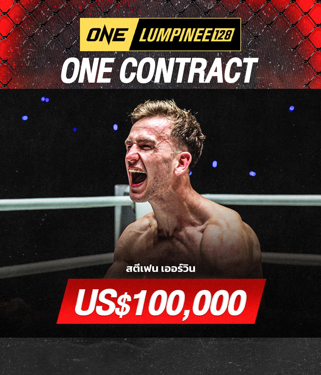 จากผลงานอันยอดเยี่ยมดังกล่าว ทำให้บิ๊กบอส “ชาตรี ศิษย์ยอดธง” ตัดสินใจมอบสัญญา ONE ให้เป็นของรางวัลสุดเซอร์ไพรส์แก่ “สตีเฟน” ทันที และทำให้เขากลายเป็นนักชกคนที่ 33 จากเวที ONE ลุมพินี ที่ได้เลื่อนชั้นเป็นนักกีฬาภายใต้องค์กรศิลปะการต่อสู้ยิ่งใหญ่ที่สุดในโลกอย่างเป็นทางการ