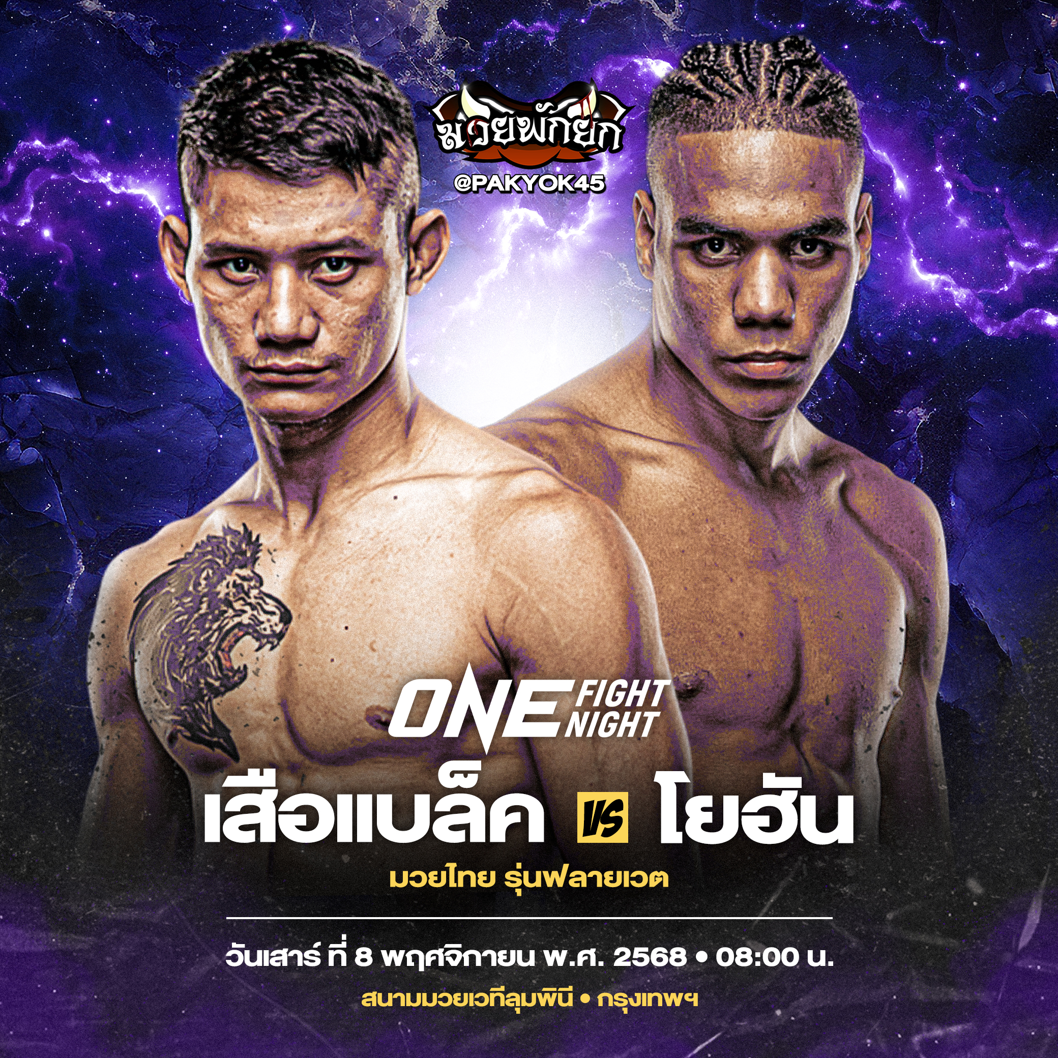 ศึก ONE Fight Night 37: โรมัน vs ซาเมต ถ่ายทอดสดจากสนามมวยเวทีลุมพินี (รามอินทรา) วันเสาร์ที่ 8 พ.ย. 68 จองบัตรเข้าชมในสนามผ่านทาง THAI TICKET MAJOR คู่แรกเริ่มเวลา 09.00 น.