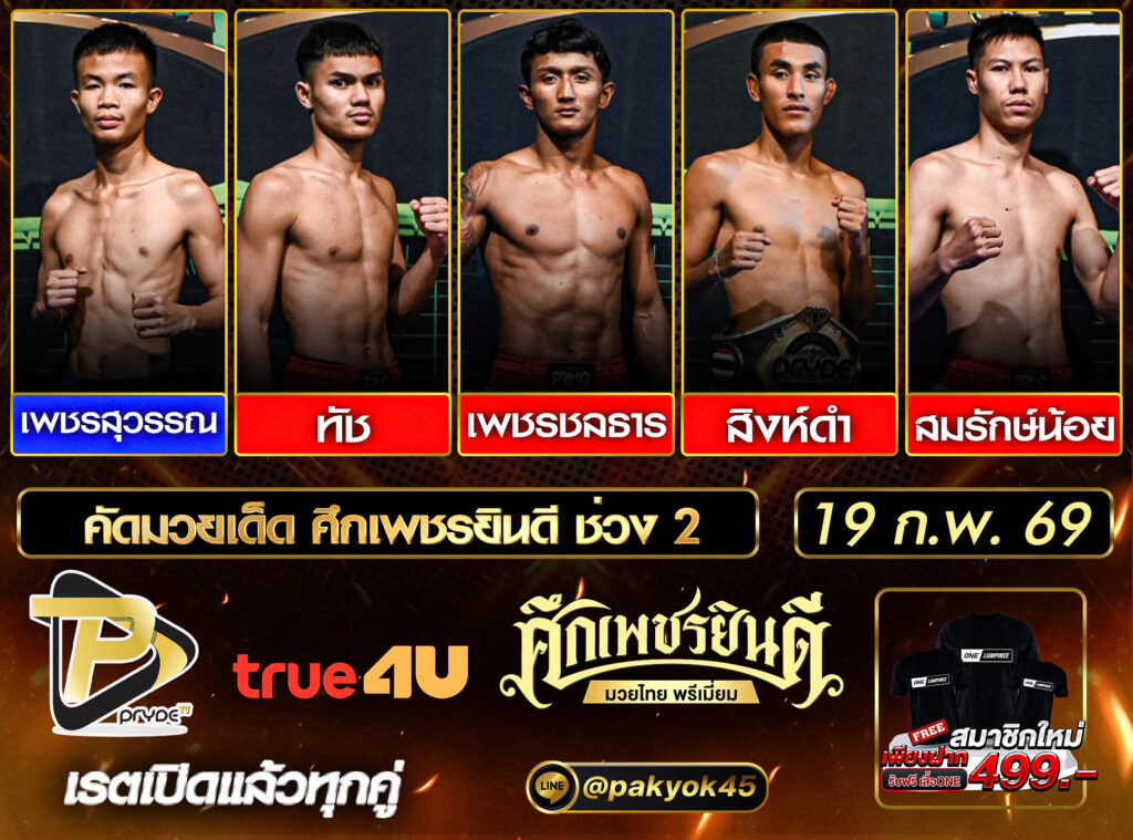 คัดมวยเด็ด ศึกเพชรยินดี ช่วงที่ 2 วันพฤหัสบดีที่ 19 กุมภาพันธ์ 2569