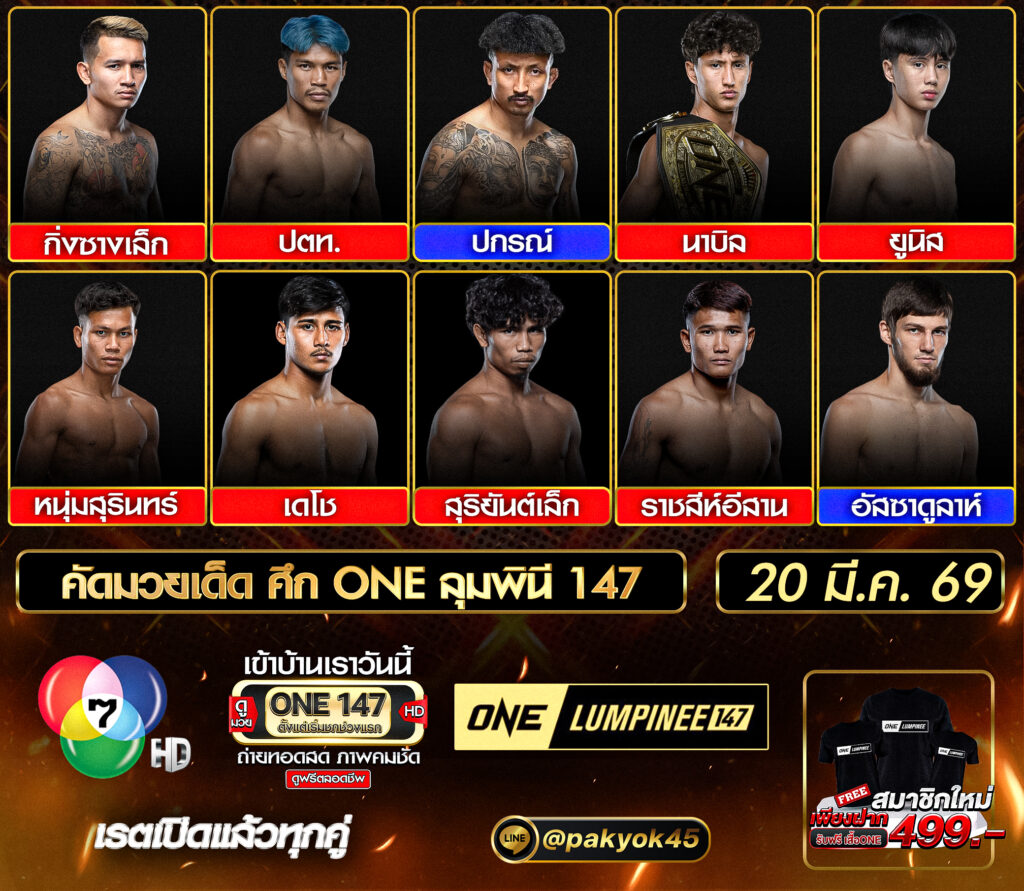🥊 คัดมวยเด็ด ศึก ONE ลุมพินี 147 🥊 📆 วันศุกร์ที่…