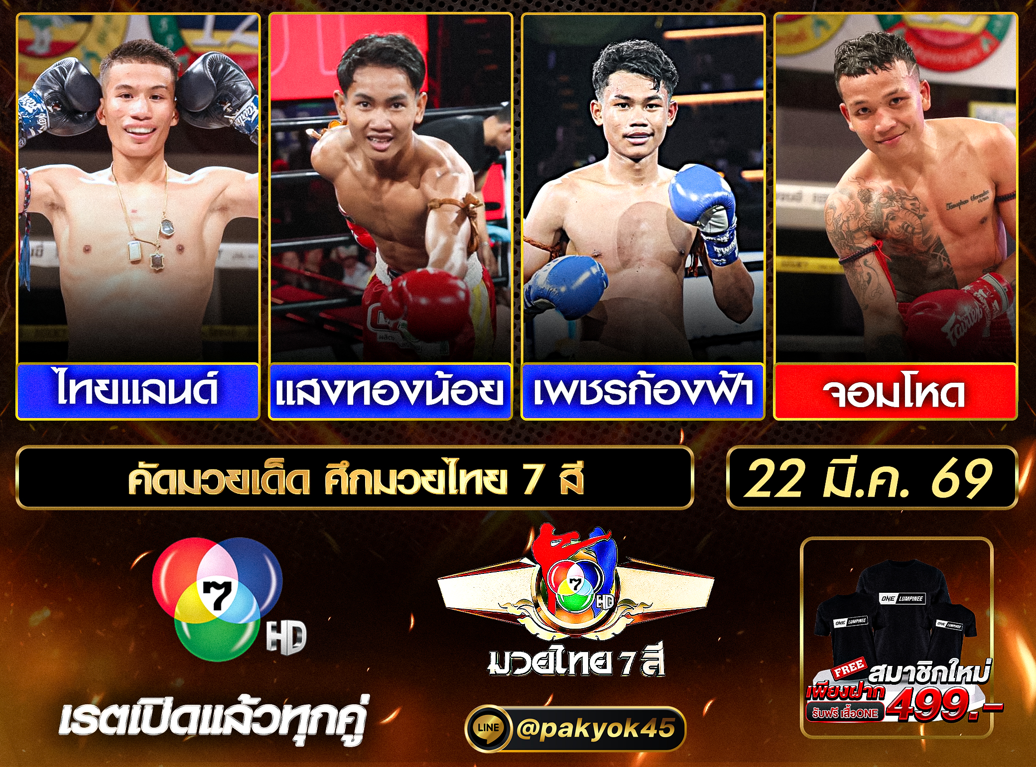 คัดมวยเด็ด ศึกมวยไทย 7 สี วันอาทิตย์ที่ 22 มีนาคม 2569