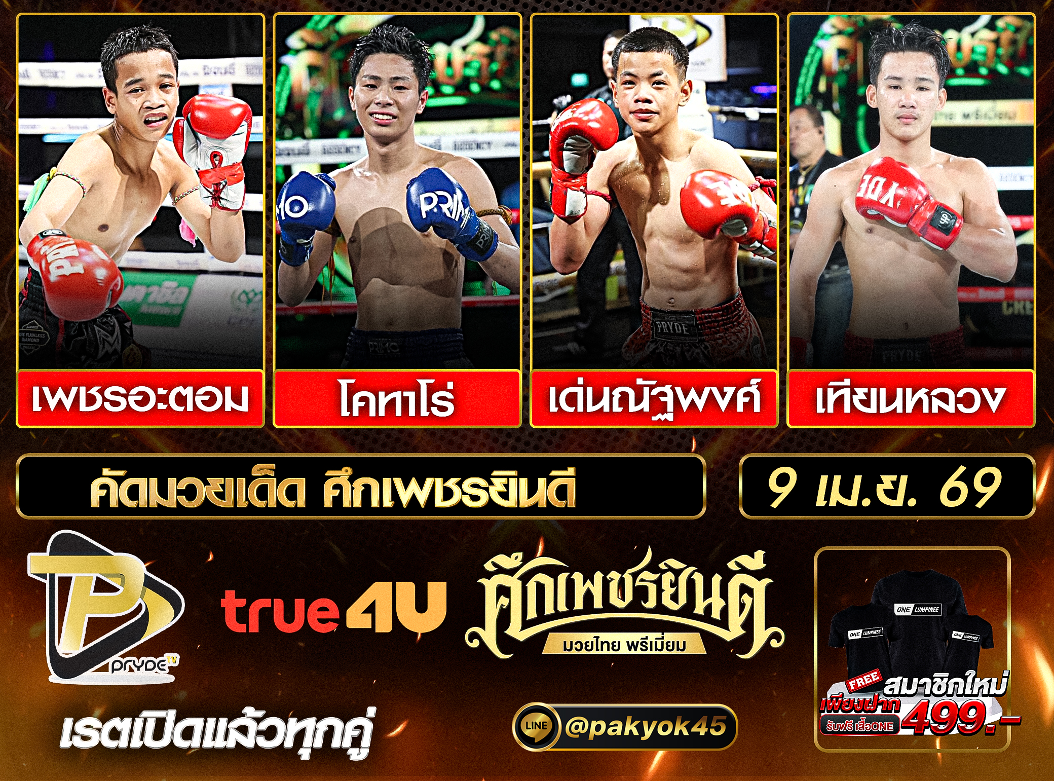 คัดมวยเด็ด ศึกเพชรยินดี วันพฤหัสบดีที่ 9 เมษายน 2569
