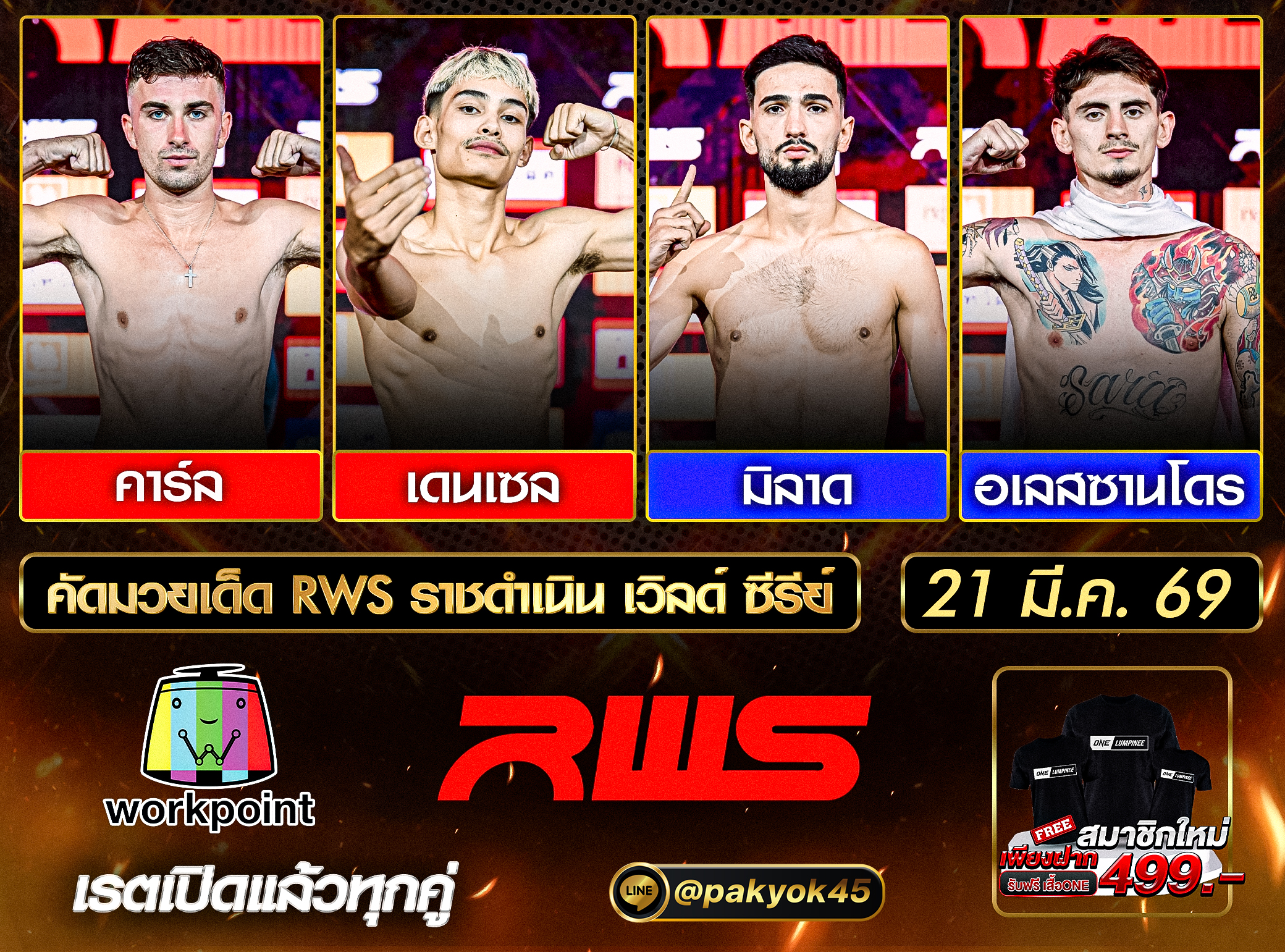 คัดมวยเด็ด ศึก RWS ราชดำเนิน เวิลด์ ซีรีย์ วันเสาร์ที่ 21 มีนาคม 2569