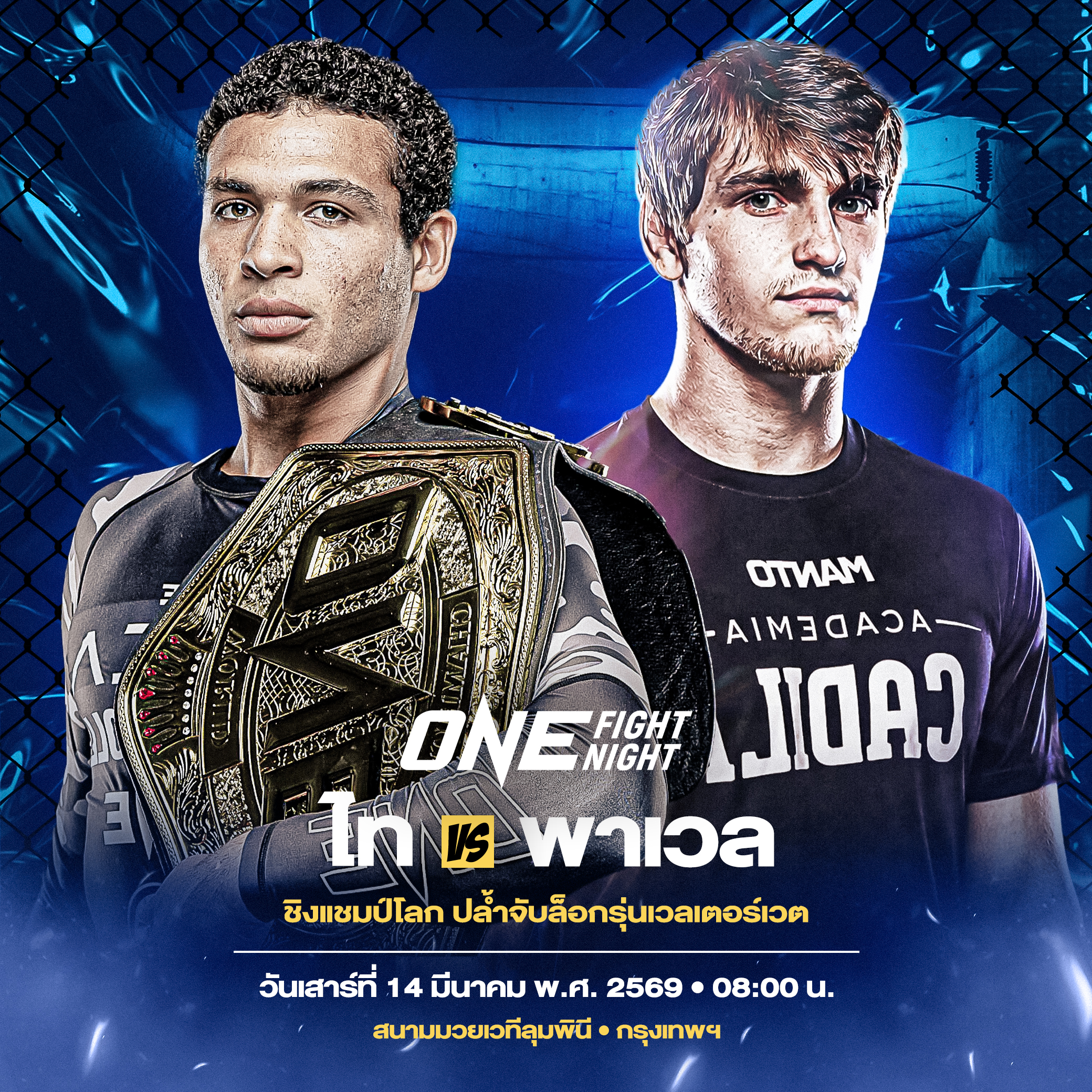 ศึก ONE Fight Night 41 ถ่ายทอดสดจากสนามมวยเวทีลุมพินี (รามอินทรา) วันเสาร์ที่ 14 มี.ค. 69 จองบัตรเข้าชมในสนามผ่านทางTHAI TICKET MAJOR คู่แรกเริ่มเวลา 08.00 น.