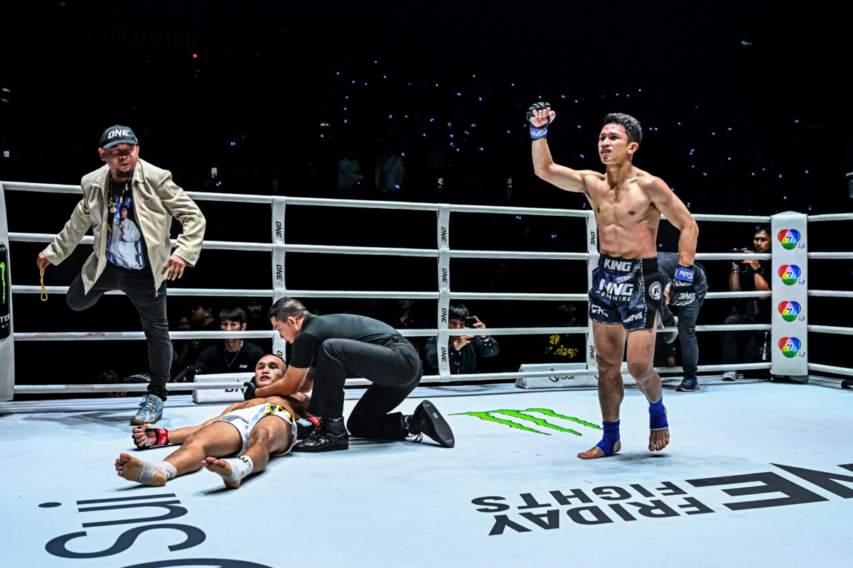 ทางฝั่ง “ไม้ซางคำ” หลังพลาดท่าพ่ายแพ้ครั้งแรกในรายการให้กับ “วัชรพล” เจ้าตัวสามารถเรียกความมั่นใจกลับมาได้ทันที ด้วยการคว้าชัยคะแนนเอกฉันท์เหนือ “เพชรสังวาลย์ ส.สมานการ์เม้นท์” ในศึก ONE ลุมพินี 115 เมื่อเดือน ก.ค. 68 ส่งผลให้เพิ่มสถิติเป็นชนะ 7 จาก 8 ไฟต์ในรายการนี้ พร้อมสะสมโบนัส 350,000 บาท ได้มากถึง 4 ครั้ง