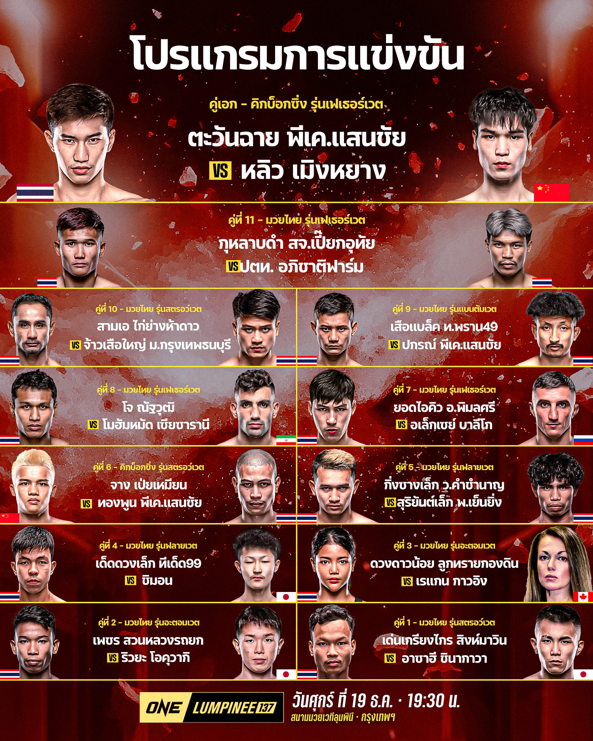 ศึก ONE ลุมพินี 137: ตะวันฉาย vs เมิงหยาง ถ่ายทอดสดจากสนามมวยเวทีลุมพินี (รามอินทรา) วันศุกร์ที่ 19 ธ.ค.นี้